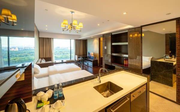 公寓位于全亚洲极具规模的琶洲会展核心商区,紧邻琶洲保利世贸展览馆、“广州南肺”之称的万亩果园,空气清新,可将城市美景尽收眼底。公寓拥有各类舒适客房,均经过专业设计师团队精心设计、布置,装修典雅、个性化。房内配备嵌入式高档家电、中央空调、中央暖气、独立卫生间浴室、一体化西式厨房、全自动烘干型洗衣机、数字电视等,为您提供私密、高品质的居住空间。同时,公寓提供集酒店式服务、居家式体验为一体的特色短租公寓服务,既引进了星级酒店的服务功能和管理模式,能满足中长期出差、自由行、深度旅行等各方需求。