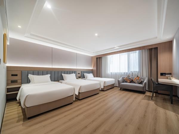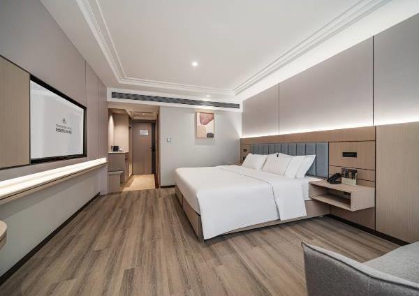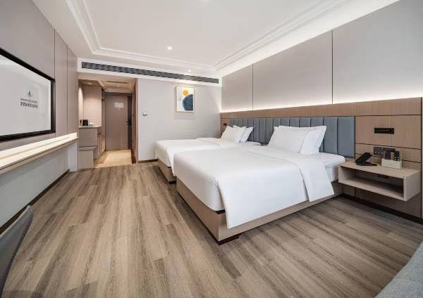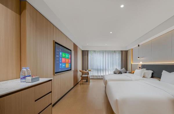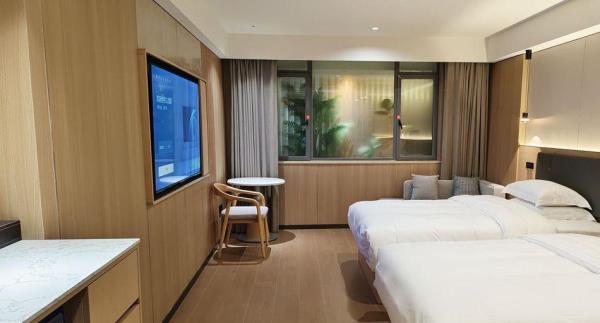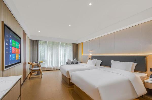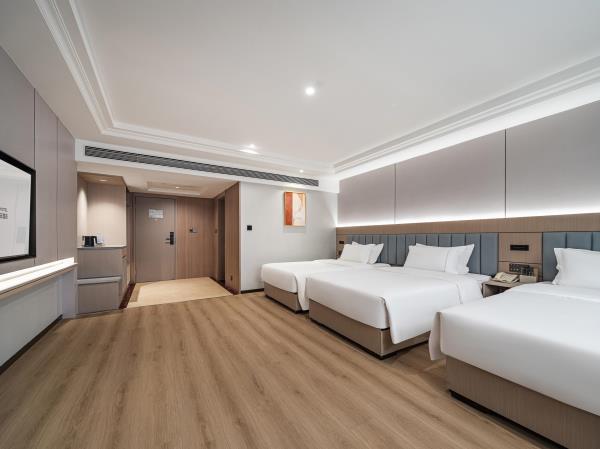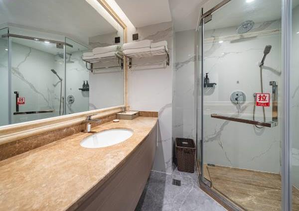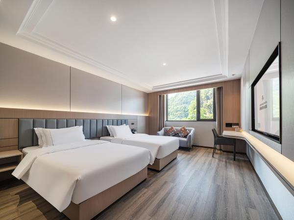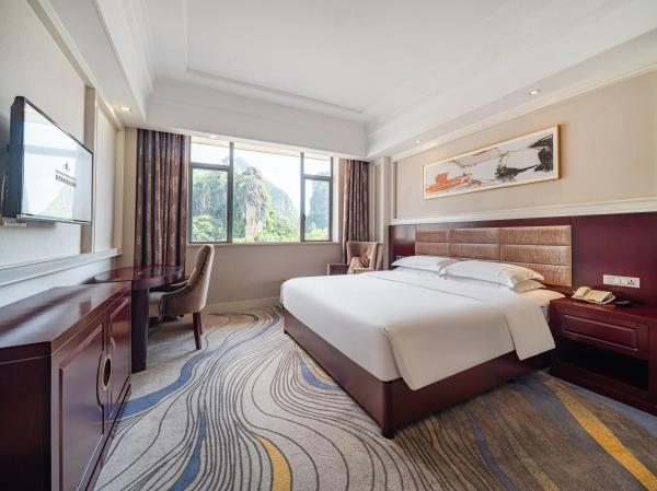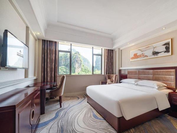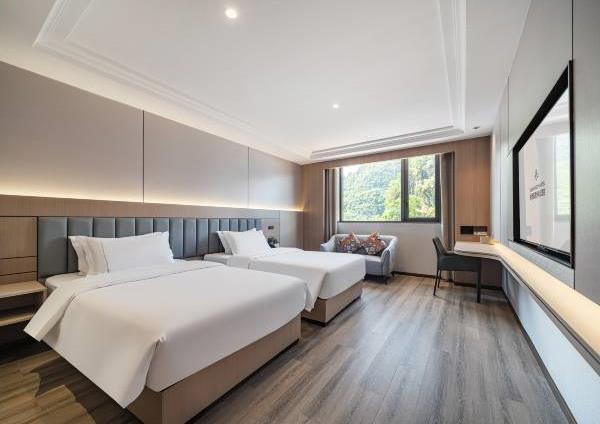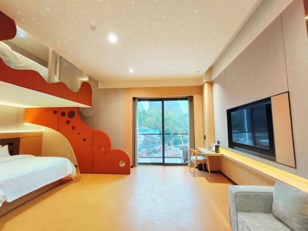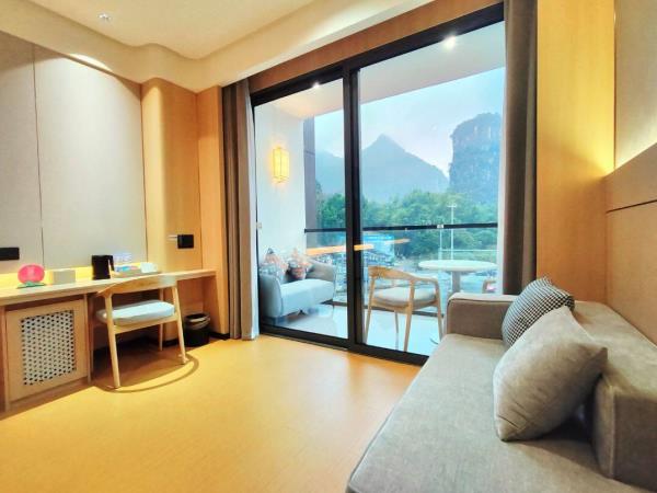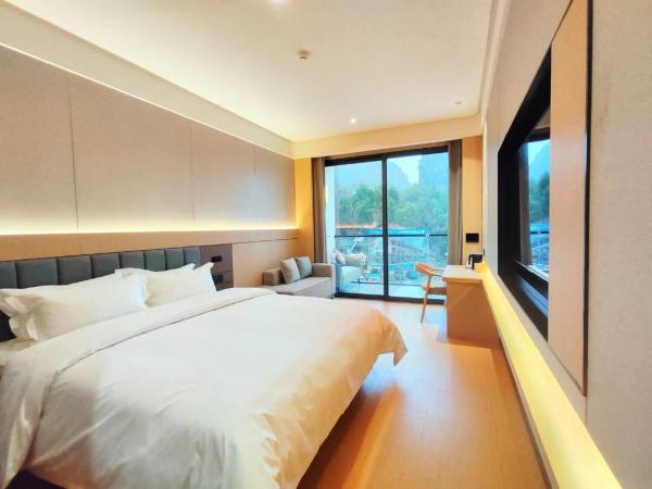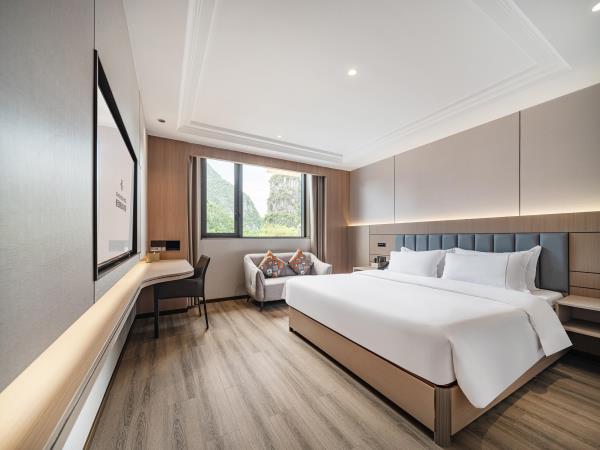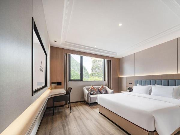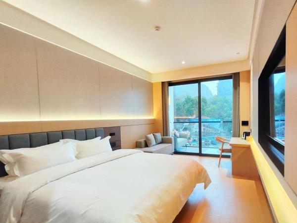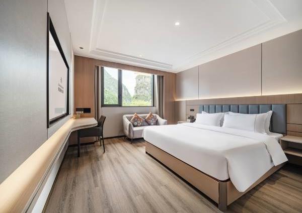 位于阳朔县城中心的酒店,宛如一颗璀璨明珠,镶嵌于县城的繁华心脏地带。只需信步5分钟,便可抵达闻名遐迩的西街,那里是阳朔的烟火盛景,是美食与文化的汇聚之地。而与繁华的益田西街更是近在咫尺,举步即达。面朝景色秀丽的阳朔公园,绿意盎然的景致尽收眼底,让您的每一次凝望都成为一场视觉盛宴。地理位置得天独厚,从阳朔码头到酒店步行约15分钟,无论是乘船而来还是准备出发,都能轻松抵达,让您的旅程无缝衔接。 酒店建筑面积达2.8万平方米,拥有168个车位的大型室内停车场,宽敞明亮,为您的爱车提供安全、便捷的停放空间,让您无需为停车烦恼。 这是一家融合商务与休闲设计理念的酒店,装潢艺术构造相得益彰。客房装饰古典豪华,富于弹性且脚感舒适的地毯,仿佛是为您量身定制的柔软云朵,每一步都踏在惬意之上。双层隔声防噪窗帘,将外界的喧嚣隔绝在外,为您营造一个静谧的休憩空间。康乃馨纯棉床上用品,触感细腻,亲肤柔软,在橘黄色柔和的灯光下,尽显高星级酒店的雍容华贵,让您在舒适的睡眠中,忘却旅途的疲惫。 可个性调控的中央空调,满足您对温度的个性化需求;55寸创维液晶电视,画质清晰,色彩鲜艳,让您在房间内也能享受到影院级的视听盛宴;静音迷你冰箱,为您的饮品保鲜,让您随时都能享用清凉的饮品;现代简约、兼具功能性和舒适性的豪华家具,让您的每一次触碰都能感受到品质的温度。洗手间内,欧式电吹风、专用剃须电源、德国贝朗卫浴,精致通透的浴室设计,让您在沐浴时也能感受到奢华与惬意,旅途劳顿在此刻烟消云散。 酒店关注每一个高效优质的细节服务,从您踏入酒店的那一刻起,贴心的服务便如影随形。无论是商务出行还是休闲旅行,这里都是您理想的居停之所。在这里,您不仅能享受到高品质的住宿体验,更能感受到家的温暖与关怀。阳朔中心广场酒店,期待您的光临,与您共赴一场奢华之旅。