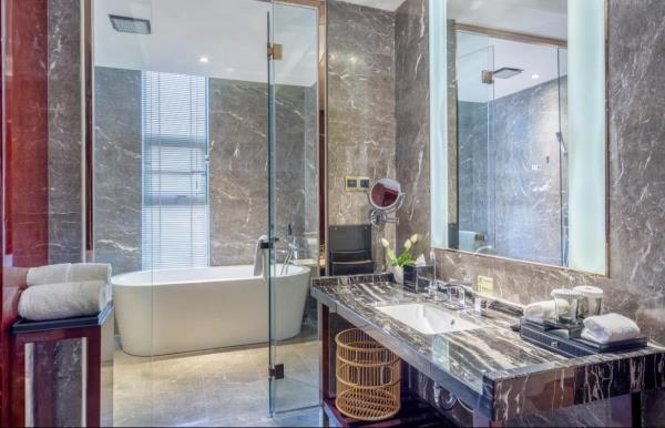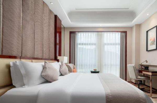 奢华与卓越的邂逅。在繁华都市的核心地带,或是宁静海滨的迷人角落。酒店宛如一颗璀璨的明珠,散发着无与伦比的魅力。 酒店位于中国品牌之都——晋江行政中心、晋江市委党校内,背依罗裳山,前有晋江市公园中心,环境优美,景色怡人、酒店交通便捷,距机场、动车、高铁站均只有15分钟左右车程。若您想探索更多晋江城市魅力,晋江市传统街区五店市、梧林古村落、草庵寺、龙泉书院等景点距离酒店均只需要10-15分钟车程。晋江市商业中心-沃尔玛国际广场更是可以举步前往。 踏入酒店大堂,您将被其宏伟壮丽的气势所震撼。高耸的天花板上悬挂着华丽的水晶吊灯,如繁星般璀璨夺目。地面铺设着精心挑选的进口大理石,光可鉴人。整体简约现代中式设计,就像一座精美的建筑艺术品,吸引着众人的目光,展现着酒店对艺术与美的执着追求。 酒店拥有各类豪华客房众多,每一间都精心设计,融合了现代时尚与经典优雅的元素。宽敞明亮的空间、舒适的床铺、配以奢华的床品,让您在疲惫的商旅途中尽享一夜好眠。从窗户向外眺望,城市的繁华景色或迷人的自然风光尽收眼底,让您心旷神怡。 酒店的餐饮选择丰富。精致的中餐,有30多间装修奢华的包厢,七个不同规格的多功能宴会厅,其中一个无柱多功能宴会厅更是有1500M²,可以满足您各种用餐、宴请、会议需求。东南亚海鲜自助餐厅,提供丰富的海鲜、料理、火锅等异国美食。无论是中餐还是自助餐都能让您的味蕾沉浸在美食的盛宴中。 在休闲娱乐方面,酒店还有50×21米室内标准恒温泳池、配备齐全的健身房、专业的SPA、Lobby Bar、茶室、美容美发等。让您紧张、疲惫的身心得到彻底的释放,恢复青春活力。 酒店以其卓越的服务理念和无微不至的关怀,让每一位宾客都感受到家的温馨。无论是商务出行还是休闲度假、喜庆宴请、朋友聚会,这里都是您的优质之选。让我们在这里,共同开启一段难忘的奢华之旅。