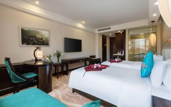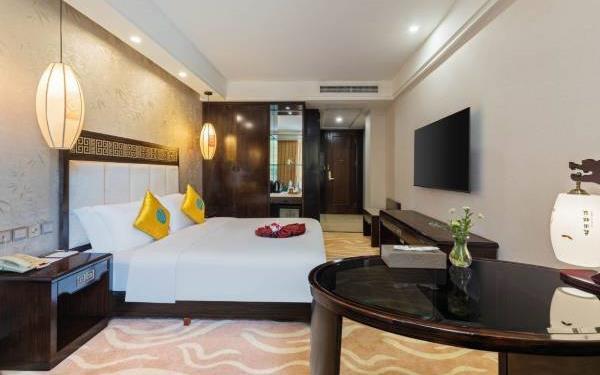 酒店位于国家AAAA级旅游景区黄龙溪古镇腹部核心地段,距中国国际西部博览城、成都科学城约车程37分钟,近欢乐田园、黄龙溪旅游客运站,是一家以绿色生态园林为核心概念设计打造的“国家金树叶级绿色饭店”。酒店拥有各类风格主题大小客房多间,装修装饰豪华大气独具匠心配套齐全,蜀汉韵味与名家字画相见,建筑与园林俯仰生姿,仿佛画是景景是画,一念散天涯,安静闲适仅此有。酒店的黄龙轩中餐厅、凯撒西餐酒廊2大中、西特色主题餐厅能同时容纳300人,另设有12个特色中餐包房,餐厅采用原生原产的当地食材,为您呈现原滋原味的风味佳肴。13个棋牌室、5间能同时容纳约520人的会议宴会场地,龙吟厅固定剧院式容纳380人,演艺酒吧“千年一瞬”大厅同时容纳300人,是您休闲度假、商务会议的理想之选。