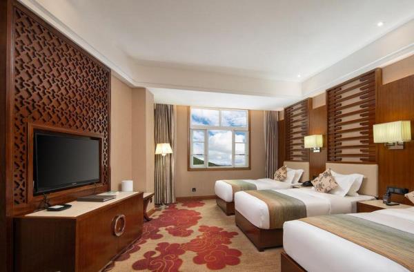 香格里拉市浩枫温德姆酒店位于香格里拉市建塘镇康珠大道东侧,不远处是著名的旅游景点——石卡雪山。酒店地处独克宗古城商圈,距离古城核心区不远,去市中心开车10分钟。酒店距离火车站7分钟车程,飞机场驾车5分钟,车站驾车约10分钟,如果自驾,酒店停车场能容纳100余辆小车,能够满足不同客人的需求。酒店距离松赞林寺15分钟车程,距离普达措公园30分钟车程,巴拉格宗景区一个半小时车程。酒店占地面积23亩,建筑面积18000平方米,酒店融合本地藏族特色,由高档实木和上乘石材组成的南亚装潢风格;内部wifi全覆盖,配备了观光电梯在内的六部电梯;酒店有房型齐全的客房,房间均配有智能触摸开关、可视猫眼、电动窗帘、加湿器、科勒洁具、水暖等人性化的设施。从房间窗户一眼望出,停车场周围是酒店精心培养的绿化植被,能给您的旅途带来不一样的体验。酒店的中心位置是一个中庭花园,闲暇时客人在花园中闲庭漫步、品茶赏月,好不惬意。酒店配备有三个不同类型的会议室,能够满足商旅客人的会议需求。酒店背靠五凤山,五凤山是香格里拉名山,客人可以登山观赏高原名贵树木,欣赏植被的多样性。