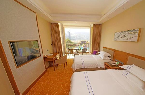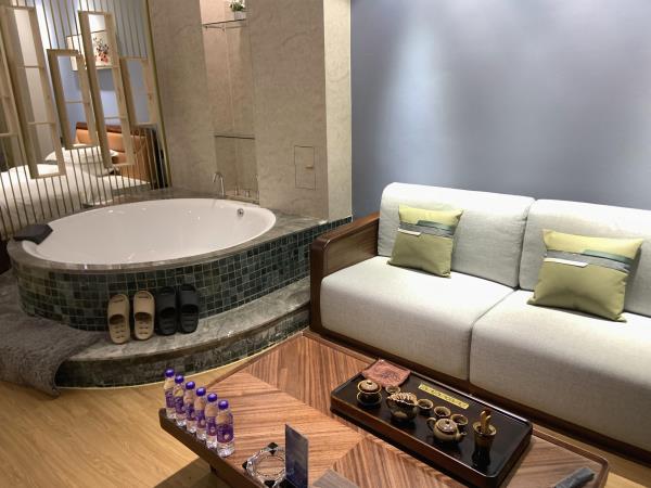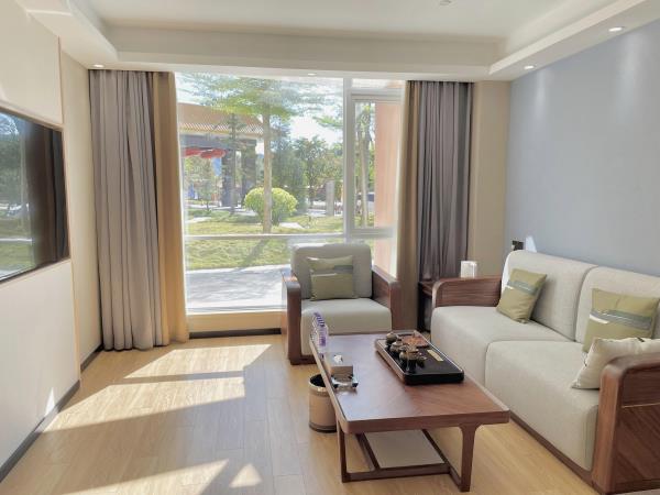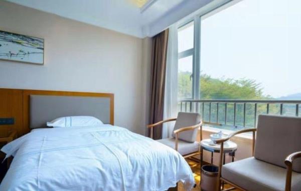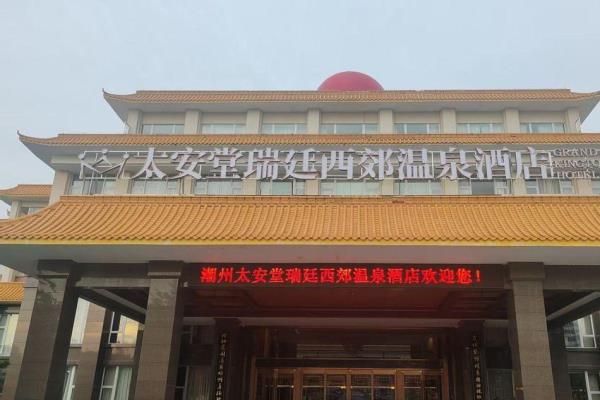 酒店地处龙头山麓,坐落于山清水秀、四季如春的中国健康医养特色小镇示范基地“太安堂医养小镇”内,位于潮州、汕头、揭阳三市中心交界处,比邻广梅汕高速公路沙溪出口,距离香港西九龙、深圳至厦门高铁潮汕站仅10分钟,距离揭阳潮汕机场仅15分钟车程,交通便利,是潮州首座以生态资源为依托,集观光游览、休闲度假、康体疗养、风情美食于一体的温泉度假酒店,也是国家AAAA级旅游景区。酒店采用“红墙黄瓦”的建筑风格,置身其中诗意油然而生,充满尊贵气息。四周群山环绕、绿树成荫、鸟语花香,空气中负氧离子含量达到6800个/m³,是一个天然的大氧吧(负氧离子能够有效分解和减少空气中的有害气体,让头脑清醒,精神愉悦,而且能有效缓解衰老,预防和改善呼吸系统疾病以及心脑血管疾病,还能降低血压,调节睡眠)。酒店拥有立体式空中温泉,拥有风格别致的56个不同形状的温泉泡池,错落有致、层层叠叠,白日里极目远眺、满目翠绿,夜晚时月白风清,浪漫宜人。温泉龙宫总建筑面积6340平方米,高6层,集文化、健康、休闲、理疗SPA等功能于一体,以中药养生、禅泉养心、儒泉德润、仙泉养神等不同主题的温泉泡池为载体,完美诠释中国养生哲学,2010年获评潮州新八景,也是广东省仅有的三大高温温泉之一。泉口水温高达到107ºC,日出水量达2000立方米,具有水温高、分布广、水质好、流量大的特点,泉水含有氯化钠、偏硅酸、氡、氟、硫、锂等多种对人体有益的微量元素,属罕见的医疗保健型温泉。酒店还拥有华客房并配套中西式餐饮、各类会议室、宴会厅、烧烤营地等配套服务项目,是粤东地区温泉旅游业一颗璀璨的明珠。