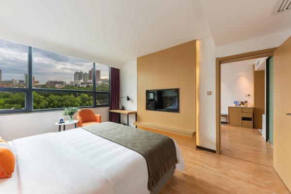 酒店位于长沙市主干道五一大道,机场大巴始发站与终点站就在院内,临近长沙火车站(地铁二号线1号出口第八医院方向)与长株潭汽车站出门即到。环境幽雅,交通便利。周围商场林立,五一广场、锦泰广场、阿波罗购物广场、友谊商场近在咫尺;百年老店火宫殿、玉楼东、长沙名小吃新华楼仅有举步之遥,另酒店免费停车位充足,客房宽敞明亮,陈设典雅。同时,店内配设可容纳200人的多功能会议厅。