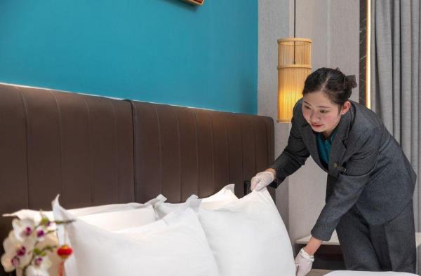 位于潮枫路与新洋路交界处,邻近潮州市政府,潮州海关,潮州市人民广场,酒店位置优越,交通便利,众多的餐饮美食便您选择,周边聚集大润发、南风里购物中心、左一城/右一城美食天地,新桥路商业步行街、苏宁易购等购物及美食商场为了方便您的出行:往潮州各大景区:广济桥、潮州西湖、开元寺、牌坊街、韩文公祠、凤凰洲公园、滴滴出行8到20元可到各个景点。酒店以新中式装修风格为主,选用梦百合新款零压床垫,空气感面包枕,高端的床上用品,房间配有50寸高清液晶电视,光纤接入至每个房间。酒店的信念“让每一位客人享受婴儿般精致睡眠和热情周到的服务,契合商旅出差,旅游和中产家庭出行的高品质要求,是您旅途中的理想选择!
