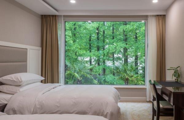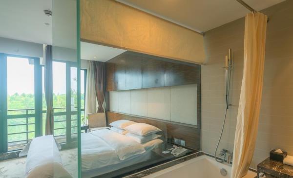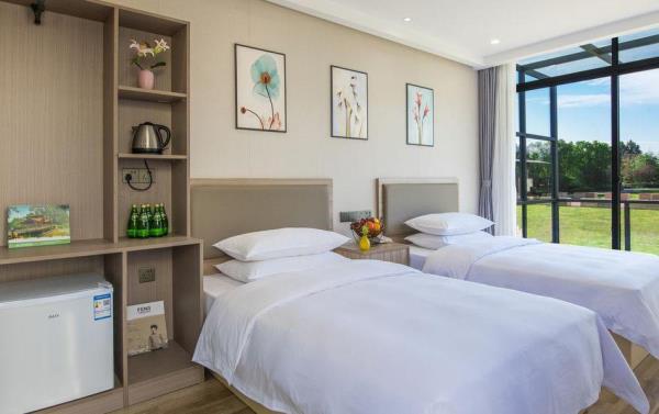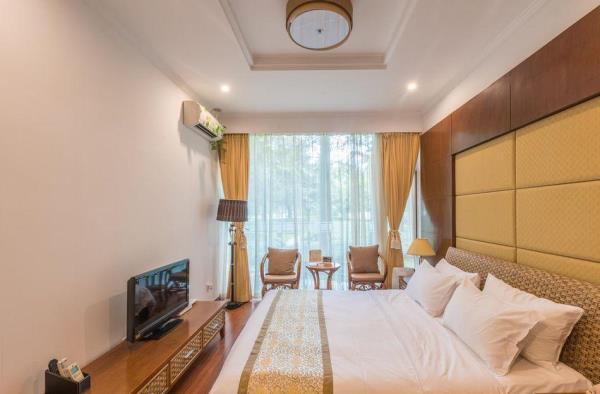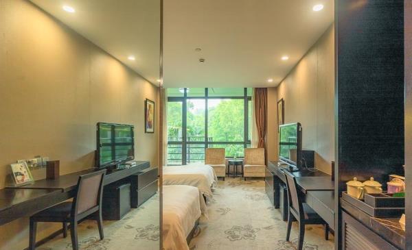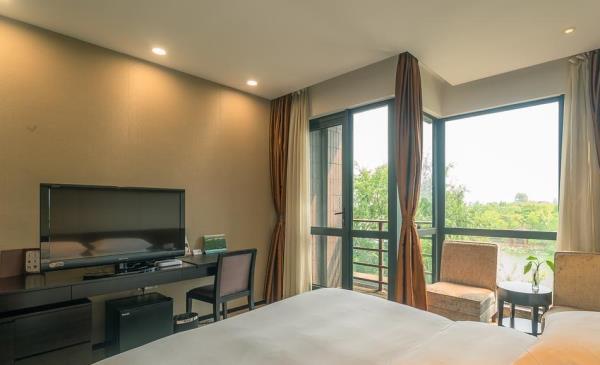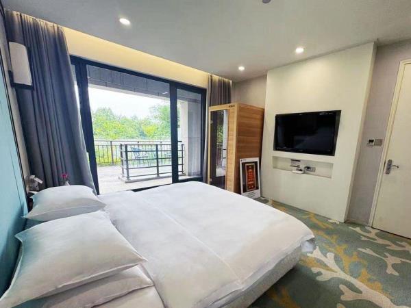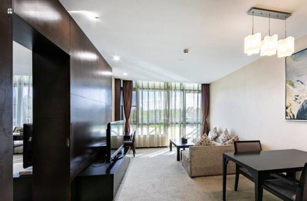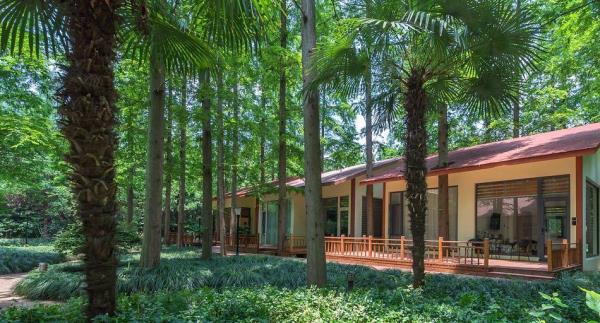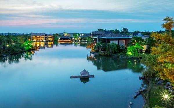 度假村位于崇明生态岛的中北部,地处东平国家森林公园南侧,毗邻根宝足球基地,环境优美,交通便捷。度假村总占地面积为33.3公顷,是一个集住宿、餐饮、会议、娱乐于一身的商务休闲度假村。度假村整体设计以东方色彩为主,客房庄重典雅、古朴大方。度假村内设中餐厅、咖啡厅、会议厅,还配有茶室、桌球室、网球场、舞厅、KTV等休闲设施,配套项目齐全。度假村内草木葱荣、湖水澄碧、百鸟鸣唱,让您回归宁静的大自然。