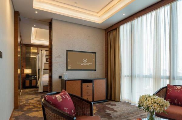 康帝酒店集团倾力打造的旗舰店一东莞康帝国际酒店,由香港郑中设计事务所(CCD)设计,地处繁华的商业中心区,因其独特的造型被誉为“东莞之门”。 位于南城中心,毗邻地铁2号线,地理位置得天独厚。酒店曾获得“中国受欢迎商旅酒店”等29项殊荣,酒店主体共40层,拥有各式豪华客房,大型无柱宴会厅及多功能会议厅,高规格接待标准的国宴厅、御宴厅。 还有风格迥异的中、西餐厅;游泳池、棋牌室、健身房等康体娱乐设施一应俱全。酒店所在的鸿福路口为东莞大规模的核心商圈之一,三大商业综合体分布在酒店周边,步行5分钟内皆可达,分别为:民盈•国贸城、海德•汇一城、东实•CPark与莞香印巷。一站式解决餐饮文娱等多种需求,且选择多样、体验丰富。
