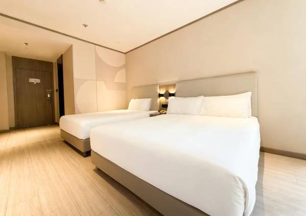 【位置】津南区双港镇赤龙街仁永名居综合楼1号。【火车站】距离天津站驾车约40分钟,可乘坐公交在双港站上车,808路直达天津站,或乘坐地铁1号线李楼站上车,营口道站换乘3号线,抵达天津站。距离天津西站驾车约45分钟,可乘坐公交在双港站上车,652路北线直达天津西站,或乘坐地铁1号线李楼站上车,直达天津西站。距离天津南站驾车约55分钟,可乘坐地铁1号线李楼站上车,营口道站换乘3号线,抵达天津南站。【机场】距离天津滨海国际机场驾车约35分钟。【交通】位于地铁1号线李楼站附近,门口公交双港站有808.629.652等路线均可直达市内商圈、景点。【周边学校】距离天津职业技术师范大学,天津财经大学等驾车约10分钟,距离天津大学城北洋园校区(天津大学,天津南开大学)等驾车约15分钟。【医院】距离天津市海河医院步行10分钟到达。距离天津环湖医院,胸科医院驾车10分钟。【周边配套】 距离天津津南永旺梦乐城驾车10分钟,门前有饭店,超市,奶茶店等供宾客选择。【设施】酒店周边有免费公共停车位,全楼无线网络覆盖。【周边商旅】津南开发区高新科技产业园,长青科技园。【周边会展】距离天津国家会展中心驾车15分钟。距离梅江会展中心驾车25分钟。 汉庭2.7 在酒店中遇见书香,轻工业设计风格,以简驭繁,传递着一种理性,优雅的品质生活态度。新增30s入住,24hr洗衣,机器人送物等6大自助体验,高效便捷。汉庭2.7客房用品全面升级,助你深度睡眠,“静”享舒心生活。