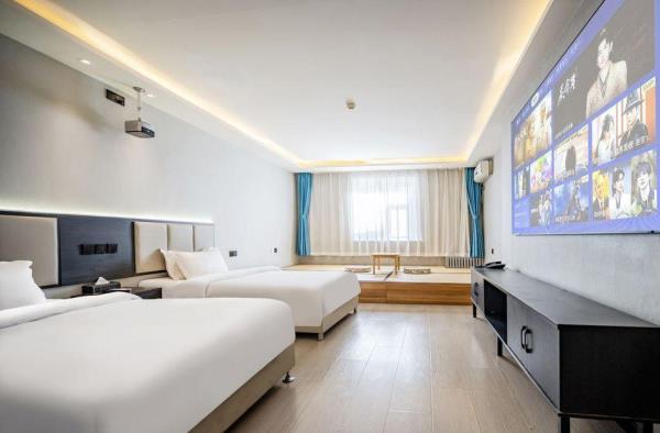 酒店静立于乌鲁木齐市新市区宁波街北十巷90号。在部分房间设置高品质的投影仪设备。这些投影仪具有超清晰的画质,能够呈现出绚丽多彩、逼真生动的影像。住客们可以在舒适的房间内,通过投影仪自由选择播放自己喜爱的各类影片、视频,仿佛置身于一个专属的私人影院之中,尽情享受沉浸式的观影乐趣。无论是想要观看新上映的热门电影,还是回顾经典的老片,都能在这里得到满足。这种独特的体验,无疑为酒店增添了更多的吸引力和魅力。 在设施与服务方面表现出色,客房提供免费的 WIFI,让住客随时能与外界保持紧密联系。同时配备了快速办理入住服务、吹风机等贴心设备,以及 24 小时不间断的前台服务,随时为住客排忧解难。酒店周边还有着独特的文化景观,有许多历史悠久、庄严肃穆的寺庙。距离高新万达主题夜市(乌鲁木齐高新万达广场店)、兰翔夜市不远,出行十分方便。期待着您的到来,为您打造舒适的住宿体验,让您的旅程更加精彩!