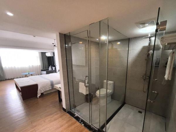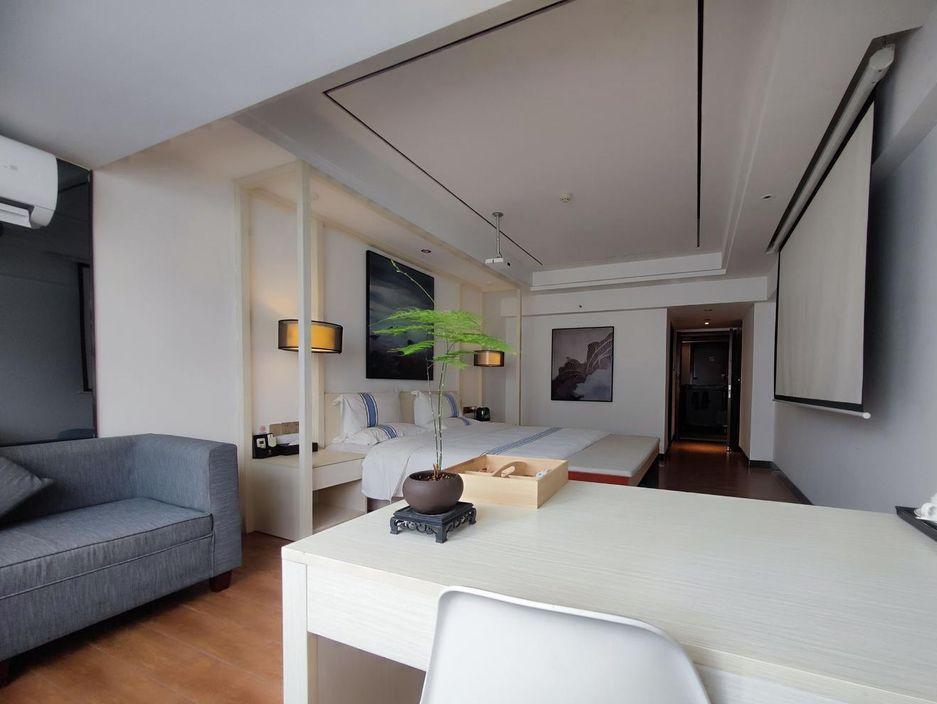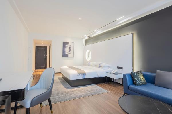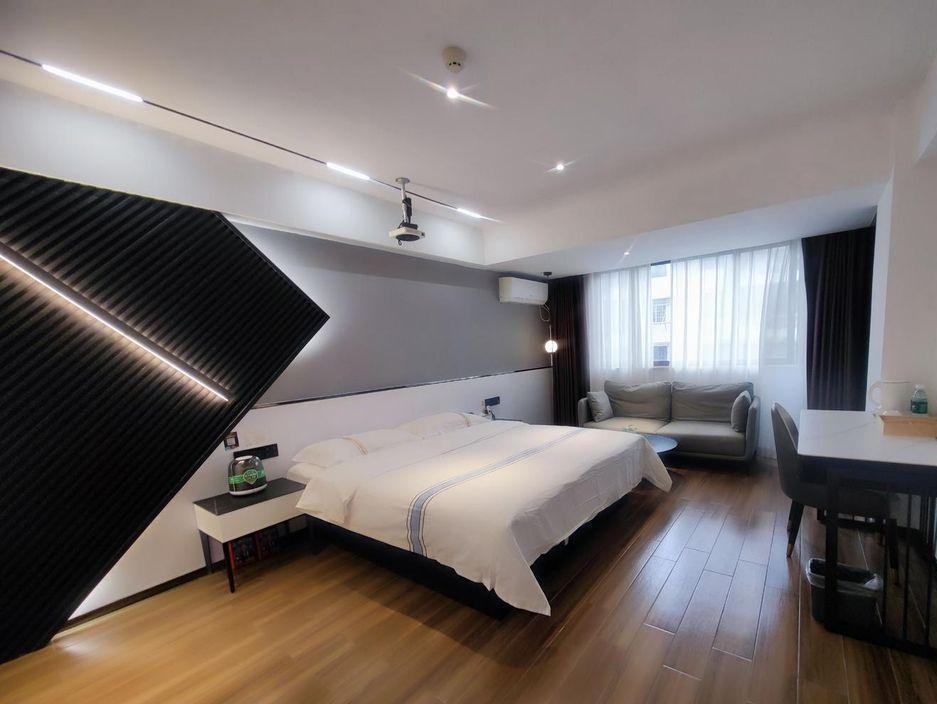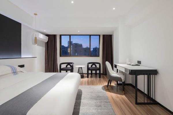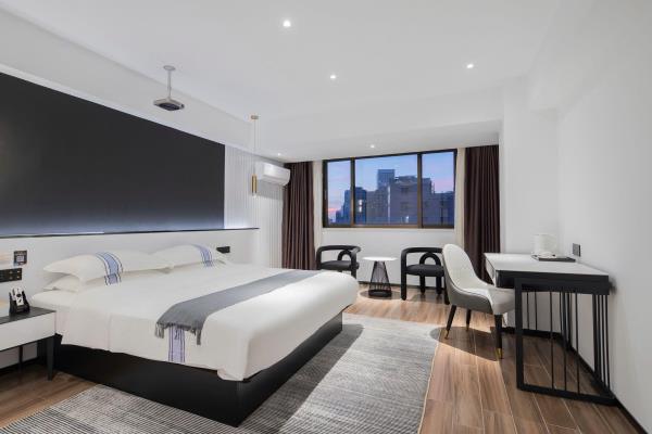 酒店位于龙华区海秀中路97号,属市中心地段,距商业街、美食广场、电影院、东湖与金牛岭公园景观都在附近,公交车即可到达,至国贸中心繁华商业街。酒店按照高端标准打造,格调简约时尚。酒店将智能科技与舒适住宿结合,带来“舒适、安全、智慧、私密”的住宿体验。智能门锁、智能投影、智能空调等全方位智能设施;乳胶床垫、纯棉被单被罩、定制洗浴用品、商务办公桌、USB充电插口、全WIFI覆盖等优质细节服务,为您提供一个智慧舒适的休息空间,是您出差旅游 情侣约会的理想下榻酒店。
