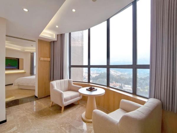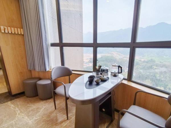 酒店是重庆市茗界酒店管理有限责任公司旗下的一家集政务、商务、团队旅游、家庭出游为一体的多功能酒店。“银叶级绿色旅游饭店”、“优秀民营企业”、“A级消防四个能力建设达标单位”等多项荣誉称号,是党政机关会议定点场所。酒店坐落于重庆市璧山区璧青北路868号,地处“成渝双城经济圈”中轴线上,是渝西各区县到重庆主城区的交通要道,距重庆主城仅半小时车程。毗邻“国家5A级旅游景区”湿地公园、枫香湖儿童公园。酒店内绿树成荫,空气清新,流水潺潺,环境静谧怡人,是喧嚣都市里难得一见的静怡之地。占地100多亩,建筑面积约16000㎡,拥有可停放100多辆车的室外大型停车场。酒店拥有适用于多元旅游需求的房型。整体设计以当代时尚艺术空间为主体,融合独特出挑的色彩。每间客房配有50寸高清数字电视,免费WIFI高速上网,齐全的设施及完美的细致服务,为您全面提升居停舒适体验。住宿配备健身房,自助洗衣房,为您提供更方便舒适的住宿体验。酒店拥有1500平方米三层跳空的大型简欧厅、水晶婚礼堂,宴会厅可同时容纳1000多人用餐。装修独立的自助餐厅可同时容纳100多人用餐,满足您多样化的宴请就餐需求。酒店设有中会议室、小会议室,拥有完善的功能、先进的会议设施以及专业的会议服务团队。酒店倾力打造一切只为让您在这里实现完美时尚的旅程,体验湖上的活色生香、感受生活的热情精彩!