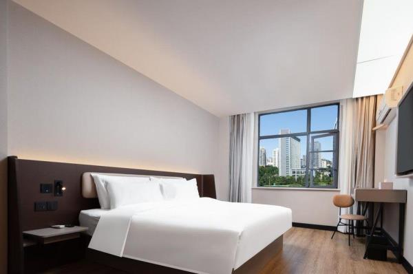 汉庭酒店(武汉洪山广场地铁站店)是华住旗下汉庭酒店3.5版本,全新升级、崭新力作,以低饱和的舒适配色及柔美利落的线条,诠释“实用主义”的美学理念,智能高科技设备,打造30s入住,机器人送物、24h洗衣,等6大自助体验。摊点式早餐呈现国民本味,明档面点暖心暖胃;客用品、家具舒适度再升级,符合人体工学得同时注入环保,科技理念,为客人带来“住的起得好品质、看得到得好设计”。酒店位于武汉市武昌区中南路80号周边花灯璀璨,车水马龙的武汉中心商圈。毗邻中南设计院,湖北省政府。洪山广场B3出口左转步行2分钟,酒店临近武汉市第14初级中学,湖北省水果湖第二中学,可乘地铁2号线直达光谷步行街,武汉大学,江汉路步行街,天河机场等;4号线直达武汉火车站,武昌火车站,楚河汉街,户部巷,黄鹤楼等;转乘地铁8号线可达东湖梨园;转乘地铁6号线可达武汉国际博览中心;是您出差工作,休闲旅游得上佳选择,爱干净,住汉庭。