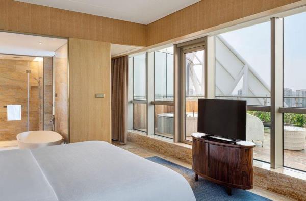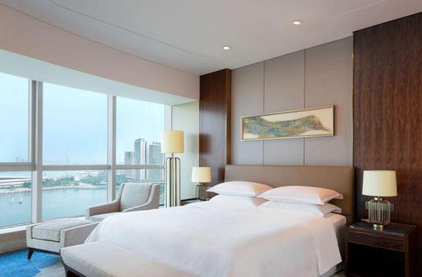 作为湛江城市地标建筑,酒店雄踞金沙湾核心海湾商业区,与赤坎观海长廊为邻,推窗即览“面海扬帆”盛景。步行5分钟直达金沙湾沙滩,10分钟车程至赤坎老街,商旅出行、滨海度假皆享无缝衔接。酒店拥有宽敞舒适的客房,多种复式房型,亲子家庭房等,丰富的住宿体验选择 ;每间客房视野开阔,部分客房拥有户外阳台露天浴缸,可观赏晨观海上日出,夜揽城市灯火。每间客房内设高速WiFi、多功能办公区,兼顾商务高效与休憩品质。客房内配套清爽棉质床单、柔软羽绒被和毛绒枕头的喜来登甜梦之床,为您营造温暖舒适的住宿体验。酒店拥有9个独立会议室和多功能空间,面积达2800平方米,其中,华威大宴会厅1440㎡无柱型宴会厅,灵活多变的会议空间,可满足客人的各种需求。临海相望的优越地理位置,无疑是举办会议或休闲度假的上佳场所。此外,酒店设有采悦轩中餐厅、雅日餐厅和盛宴标帜西餐厅共三间餐厅,可尽情体验大快朵颐的美食之旅,从纯正地道的粤菜及本地菜肴到精选国际佳肴,丰富多样的美味选择定会让您唇齿留香。位于6楼健身中心配套有无边海景泳池,与金沙湾海景视觉交融,网红打卡C位,室内恒温泳池和24小时健身房。
