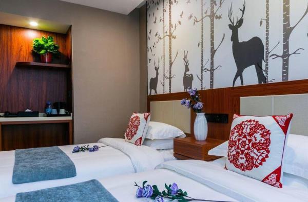 秋林酒店(西安建筑科技大学李家村地铁站店)位于雁塔路北段,距离建筑科技大学地铁站约300米,距大雁塔约10分钟车程;多条公交路线能够方便快捷的到达大雁塔、大唐芙蓉园、明城墙、碑林、钟鼓楼等著名的旅游景点。住秋林酒店,品西安美食。一楼是本地正宗的推荐打卡美食地点—“秋林食街”,不出酒店,品尝陕西特色小吃及各地美食。负一至四楼为秋林购物商场,这是一家以人文生活为主打高性价比中高端商旅酒店。酒店配备有大型会议室、中式餐厅、中央空调等一系列配套设施,无论商务、旅游、购物、娱乐、休闲,西安秋林酒店都是您西安之行的理想选择。