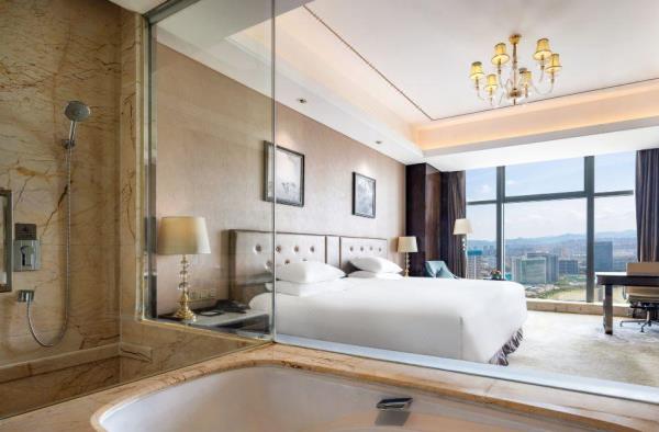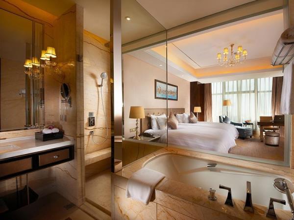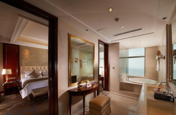 湖州东吴开元名都酒店屹立于湖州发展的最前沿——东吴国际广场,东临城市主干道江南工贸大街,临近湖州市政府,莲花庄、铁佛寺、飞英塔等大小景点,近龙之梦酒店总建筑面积约9万平方米,楼高达51层,誉美太湖名城新地标。酒店由中国民营企业500强浙江大东吴集团投资兴建,由开元酒店集团全权管理,是一家集完美温馨于一体的商务会议酒店。酒店豪华舒适,凭栏而望、可将湖城美景尽收眼底。店内餐位达2000多个,环境优雅的清丽大堂吧、经典时尚的滨河西餐厅、华贵典雅的四季轩中餐厅、幽雅静谧的国风堂包厢群、近1500平米的千人宴会厅。 18个不同规格的会议室,先进完善的会议设施给您带来前所未有的会议体验;休闲娱乐项目丰富多彩、标准短道游泳池、棋牌、SPA、健身房等康体娱乐设施一应俱全,尽显开元卓尔不凡的尊贵品质。酒店以“人性品质、真挚关爱”为理念,致力于营造每一位宾客的美好生活。