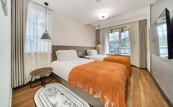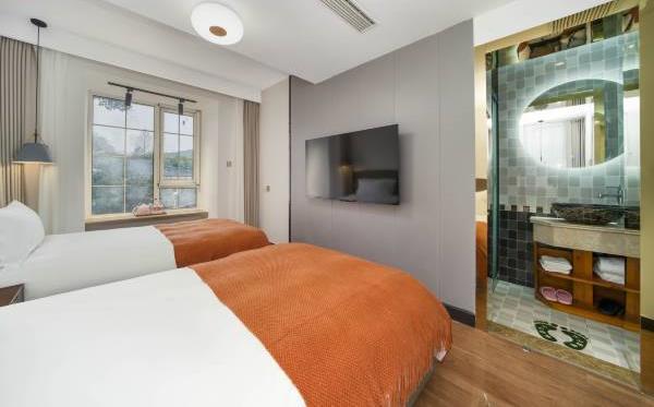 酒店位于白乐桥,步行可至灵隐寺,周围绿意盎然,环境清幽。毗邻龙井问茶、茅家埠、杨公堤、曲院风荷、岳庙及西溪国家湿地公园。酒店由两座连体别墅组合而成,屋内精致错落,南北通透,凭栏望去绿意阑珊,繁华似锦。每个房型由知名设计师精心打造,别具一格,干净、舒适、温馨,就像家一样。客房内有冬天地暖、中央空调、TOTO卫浴、一次性用品、高速无线WIFI等。一楼院子可举行30人以下的小型聚会。清晨鸟儿把你唤醒,傍晚听那钟声袅袅,温暖的午后手捧一杯茶,静心悟禅。
