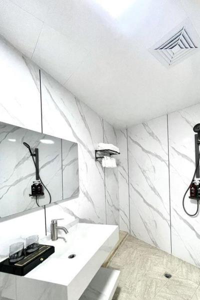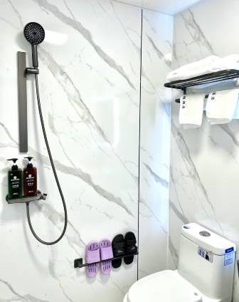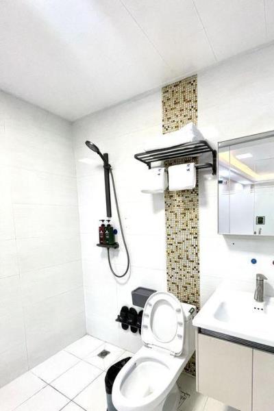 卫浴设施:浴巾、雨淋花洒喷头、淋浴、私人卫生间、毛巾、拖鞋、24小时热水、私人浴室