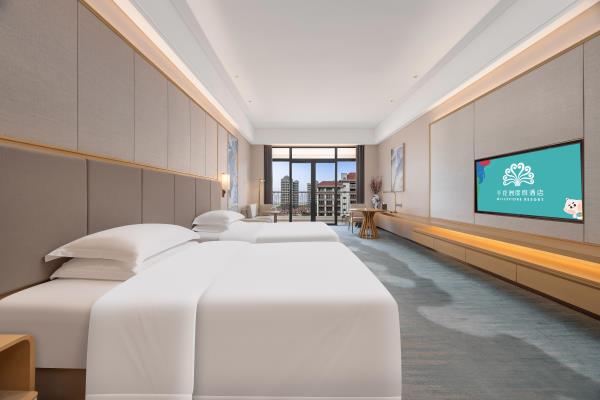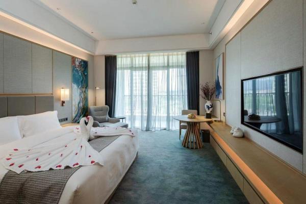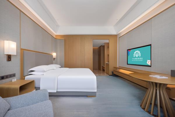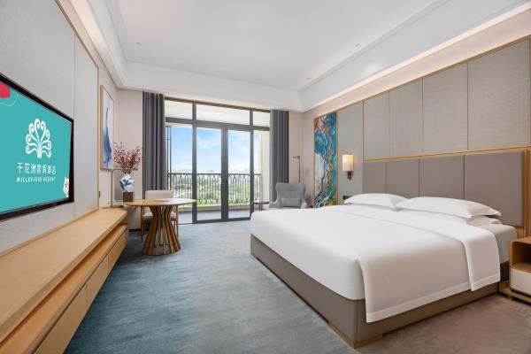酒店融合自然生态和现代轻奢建筑形态,打造独特的源风雅韵建筑风格,是绿洲与繁华的完美结合。将人们亲近大自然、追求舒适静谧环境,淋漓尽致地表达了出来,心灵度假,近在咫尺。千花洲度假酒店,将以卓越的服务品质,完善的餐饮、会议配套以及休闲娱乐设施,为您提供宾至如归的贴心服务与高品质的酒店住宿及度假体验,让您置身于优雅静谧的环境中安享度假的惬意时光。
