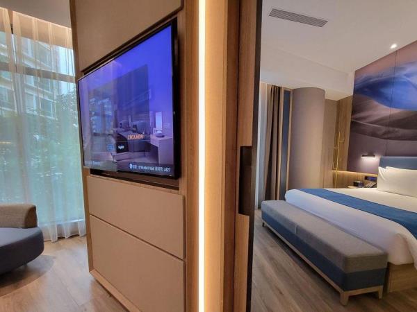 酒店坐拥地铁5号线、7号线,位于西丽留仙大道与沙河西路交汇处,地处南山明珠“西丽”中心位置。紧邻西丽湖国际科教城、留仙洞总部基地、深圳大学城、深圳南方科技大学医院、深圳万科云城、九祥岭湿地公园,距离西丽地铁D出口、众冠花园公交站步行2分钟、地理位置优越、交通便利、环境优美。旁边有益田·假日里商场、西丽366大街、集购物、餐饮、潮玩娱乐于一体的综合娱乐休闲场所。 酒店以“自由的时光”为品牌理念;以“有温度的爱”为服务宗旨;秉承中西设计格调,配备住宿、餐饮、会议、健身房等设施,将生活与自然、人文与地理、传统与现代、智能与环保结合,全力打造社交与静谧的轻奢综合型中高端酒店,为客户创造旅居与休闲的环境。