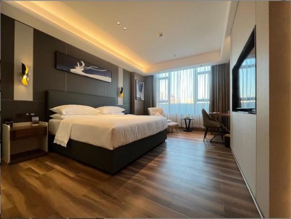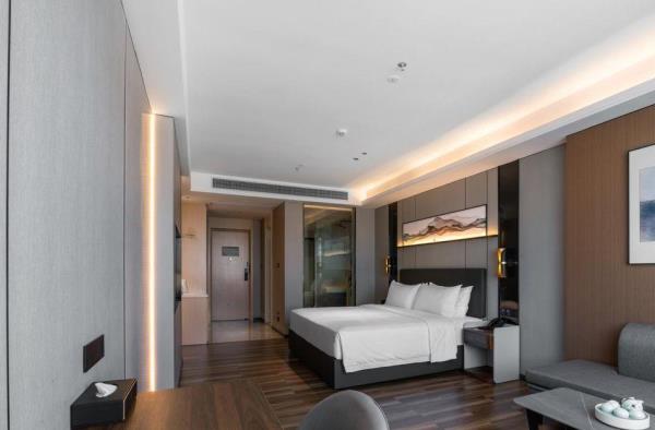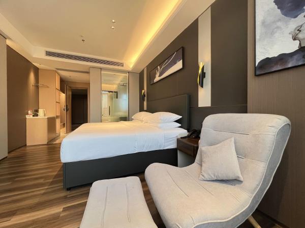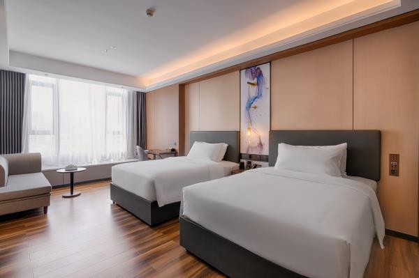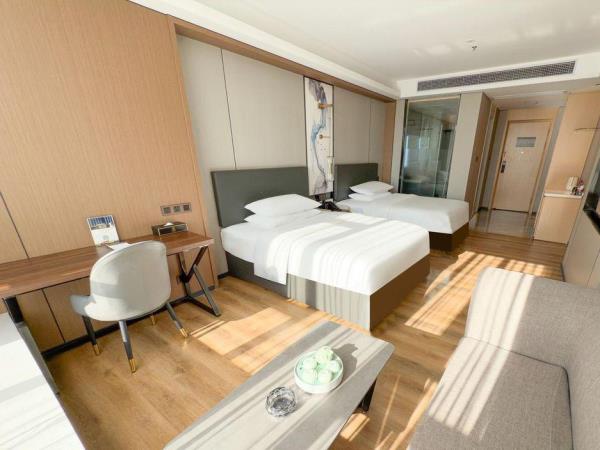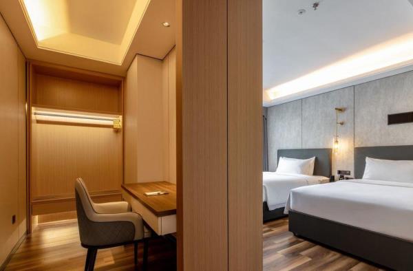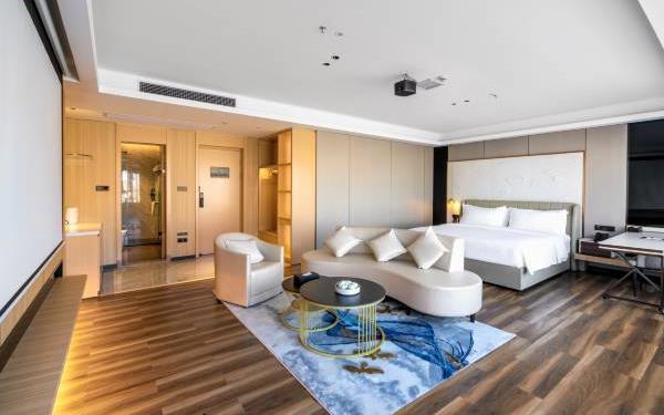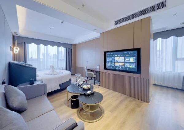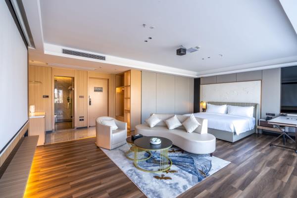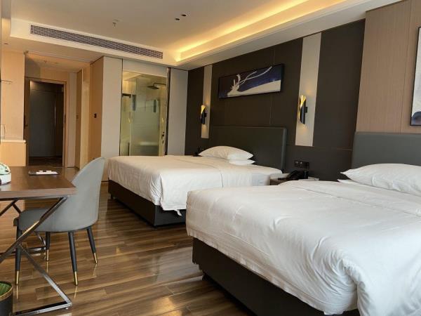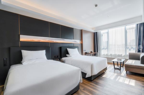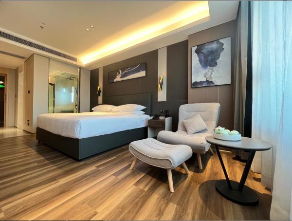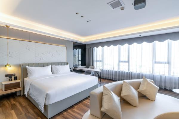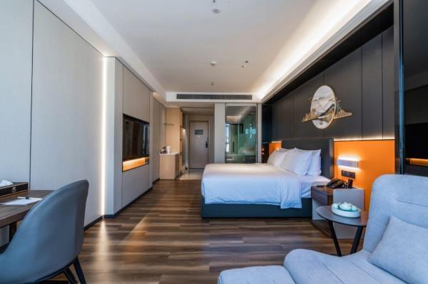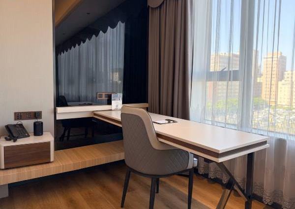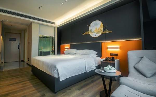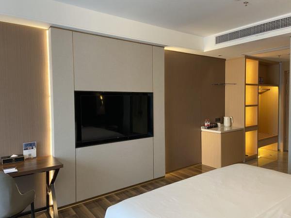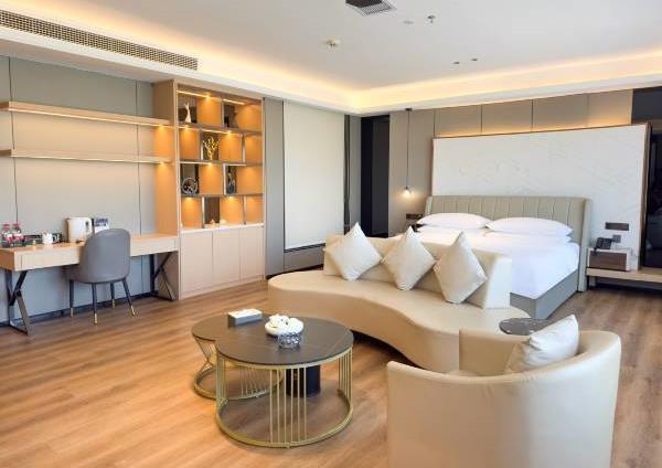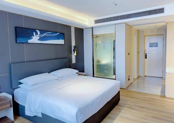 酒店位于黄山路,临近汕头高铁站,潮汕机场候机楼,星湖城商圈,儿童公园,珠江路美食街。采用了先进的智能客房控制系统(免插卡取电),为宾客提供了高品质的影音娱乐设施,包括高清大屏电视,立体音响以及私人影院。不论您是商务出差还是休闲旅游都是理想的下榻之处。客房内的所有设施都是经过精心的考虑和安排,空调在满足您入住需求的同时又能增添家的温馨感。服务人员会提前为您准备好瓶装水,以满足您的饮水需求。除此之外,配备有拖鞋、24小时热水和吹风机的浴室是您消除一天疲劳的好地方。对于健身爱好者来说,可以在健身室享受锻炼的乐趣。24小时开放的前台服务可为您随时提供信息,帮助您探索这个美丽鮀城。