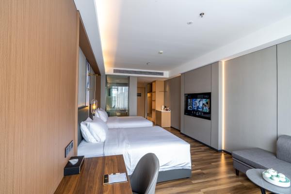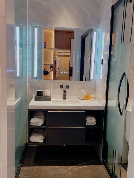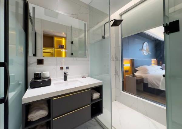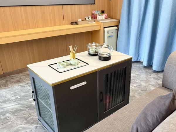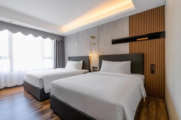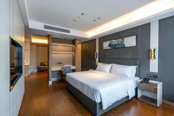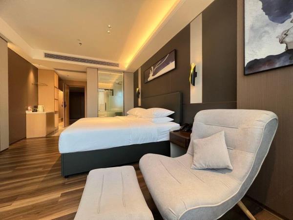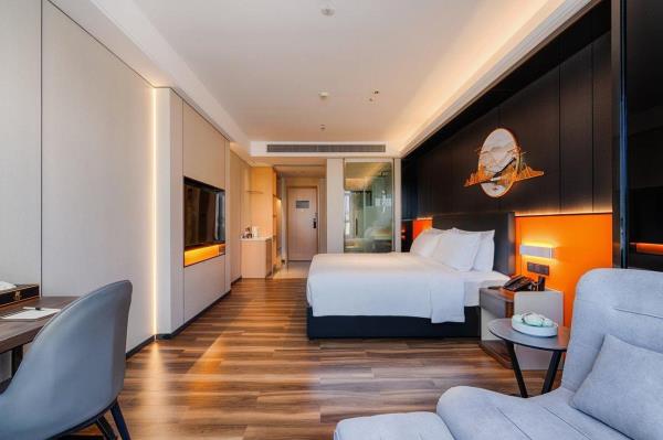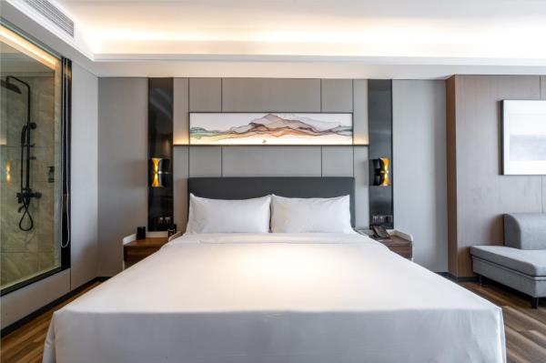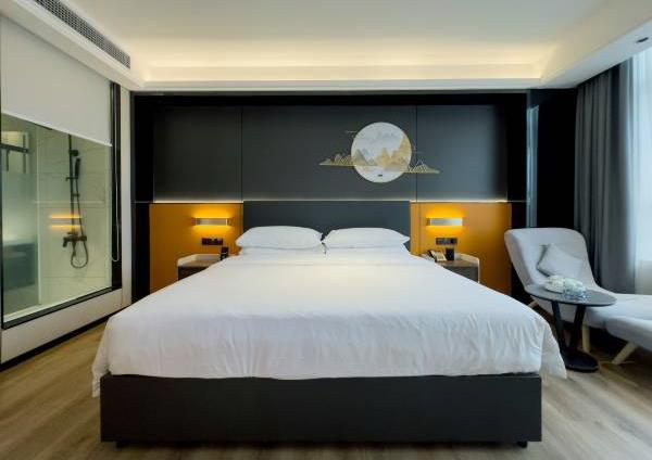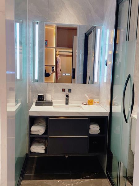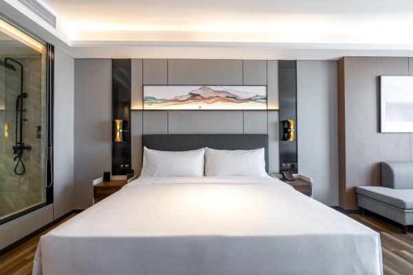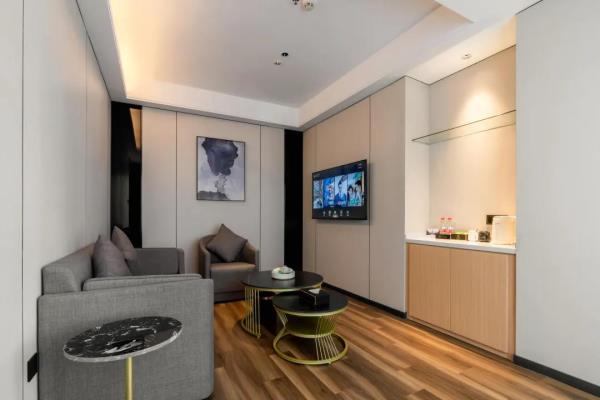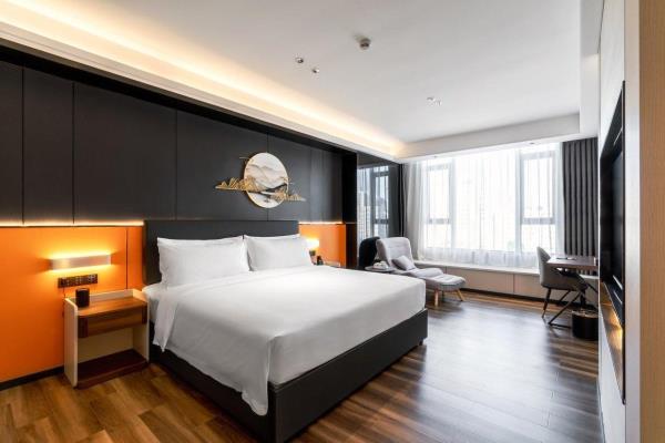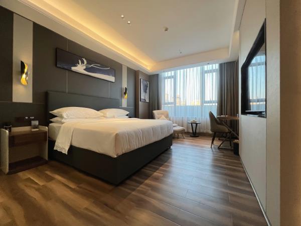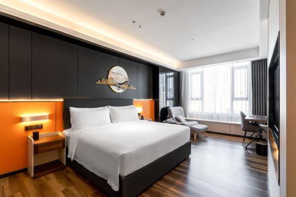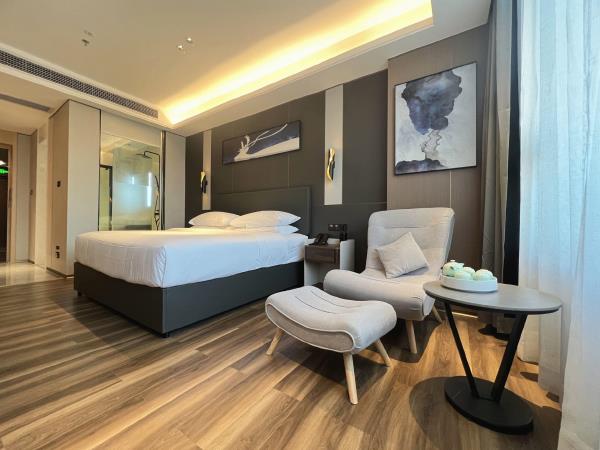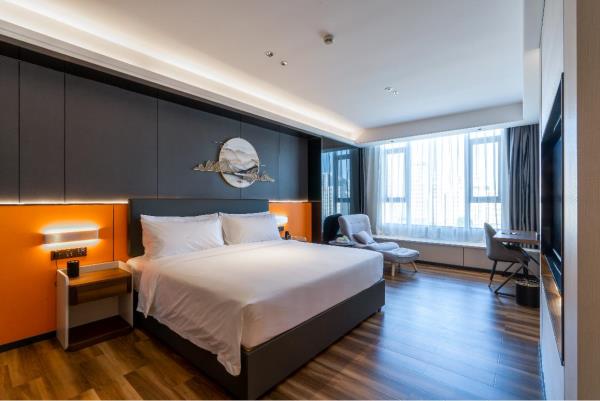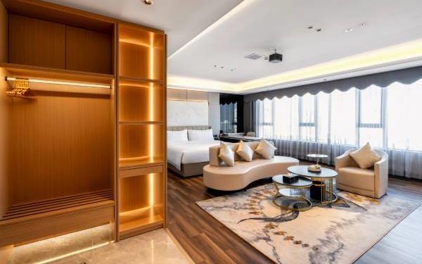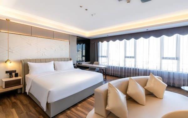 酒店位于黄山路,临近汕头高铁站,潮汕机场候机楼,星湖城商圈,儿童公园,珠江路美食街。采用了先进的智能客房控制系统(免插卡取电),为宾客提供了高品质的影音娱乐设施,包括高清大屏电视,立体音响以及私人影院。不论您是商务出差还是休闲旅游都是理想的下榻之处。客房内的所有设施都是经过精心的考虑和安排,空调在满足您入住需求的同时又能增添家的温馨感。服务人员会提前为您准备好瓶装水,以满足您的饮水需求。除此之外,配备有拖鞋、24小时热水和吹风机的浴室是您消除一天疲劳的好地方。对于健身爱好者来说,可以在健身室享受锻炼的乐趣。24小时开放的前台服务可为您随时提供信息,帮助您探索这个美丽鮀城。