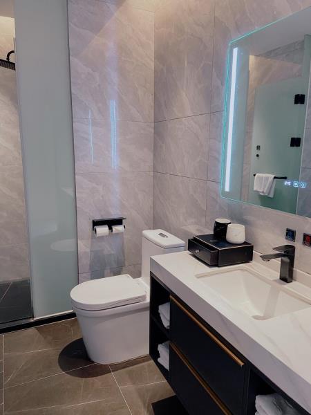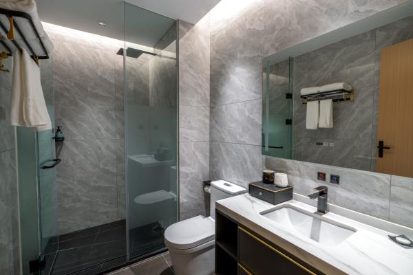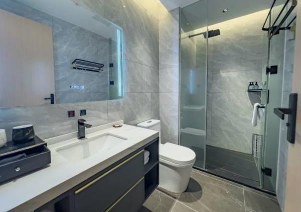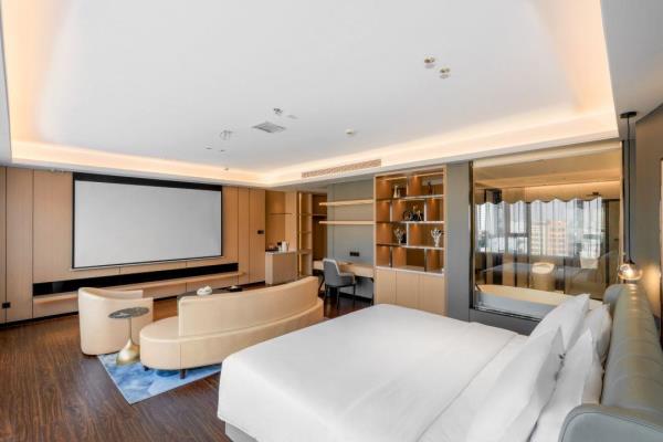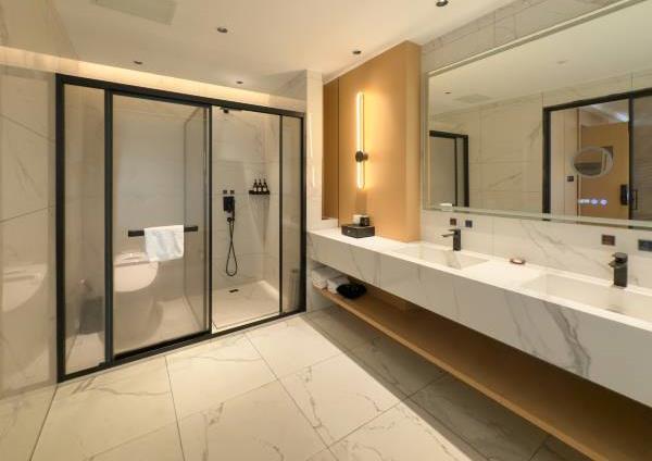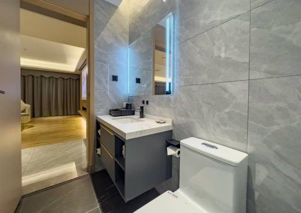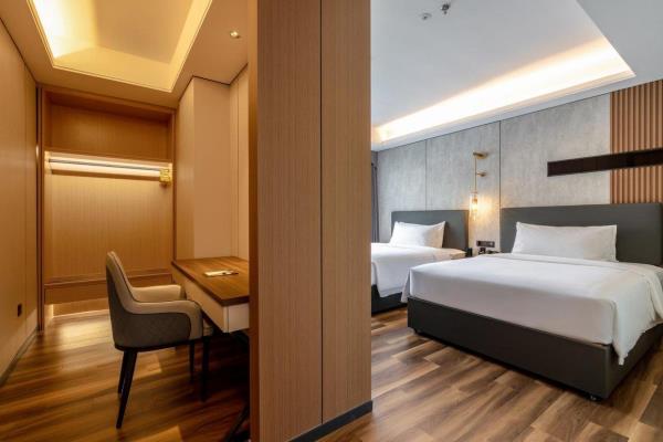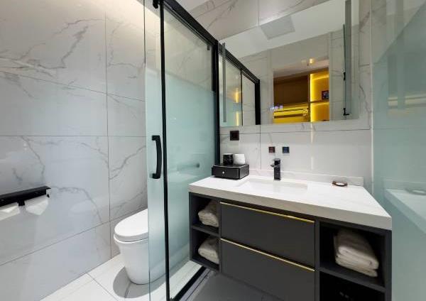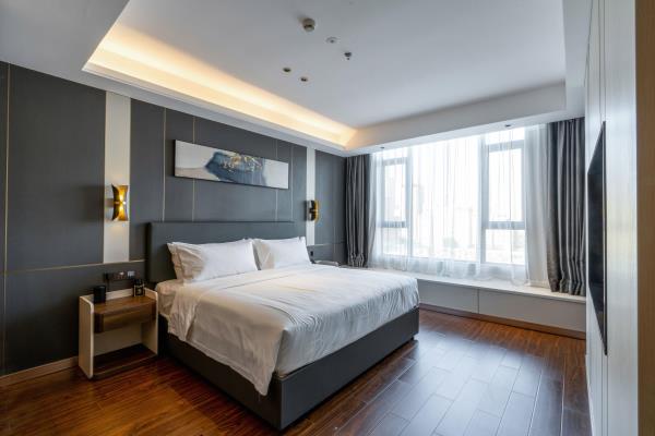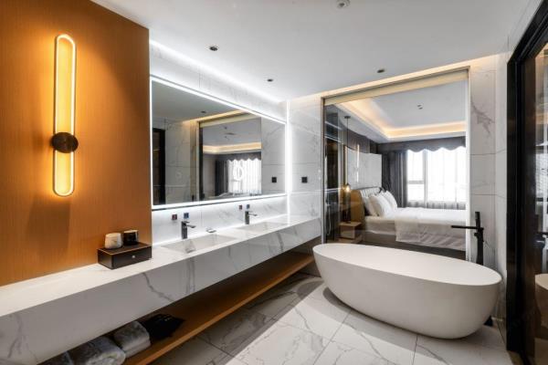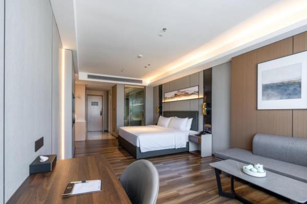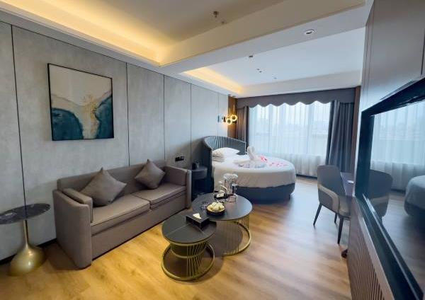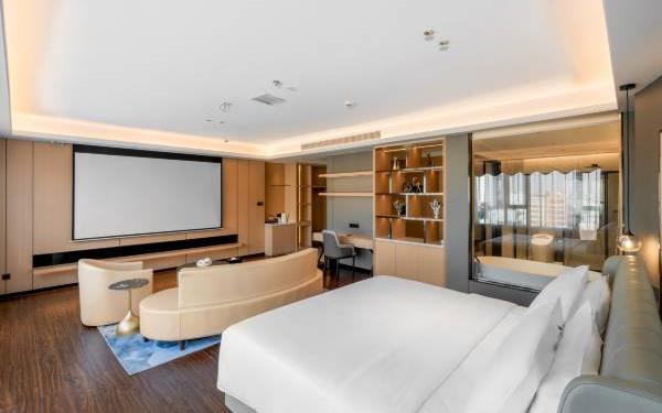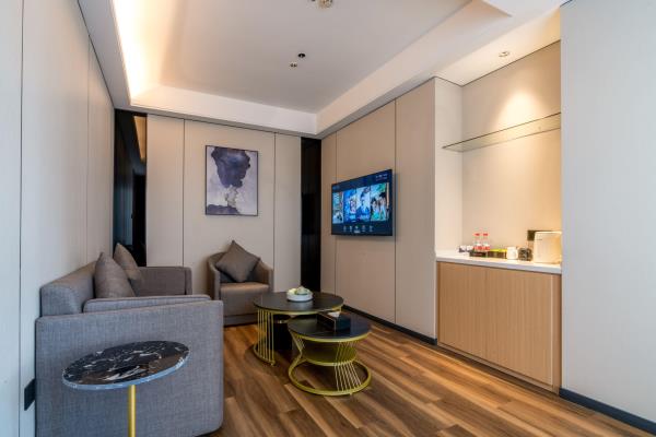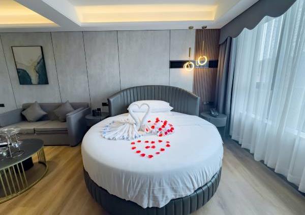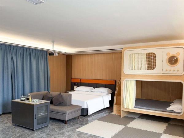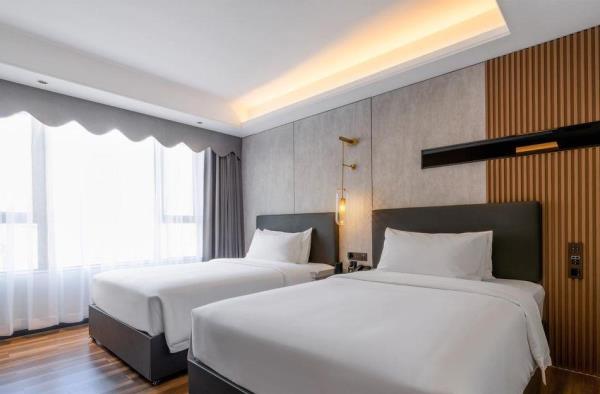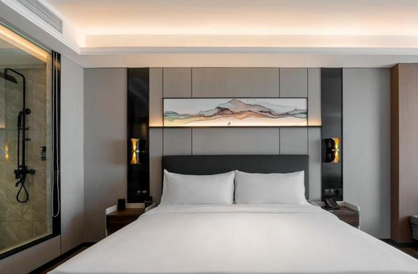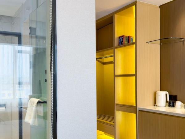 酒店位于黄山路,临近汕头高铁站,潮汕机场候机楼,星湖城商圈,儿童公园,珠江路美食街。采用了先进的智能客房控制系统(免插卡取电),为宾客提供了高品质的影音娱乐设施,包括高清大屏电视,立体音响以及私人影院。不论您是商务出差还是休闲旅游都是理想的下榻之处。客房内的所有设施都是经过精心的考虑和安排,空调在满足您入住需求的同时又能增添家的温馨感。服务人员会提前为您准备好瓶装水,以满足您的饮水需求。除此之外,配备有拖鞋、24小时热水和吹风机的浴室是您消除一天疲劳的好地方。对于健身爱好者来说,可以在健身室享受锻炼的乐趣。24小时开放的前台服务可为您随时提供信息,帮助您探索这个美丽鮀城。