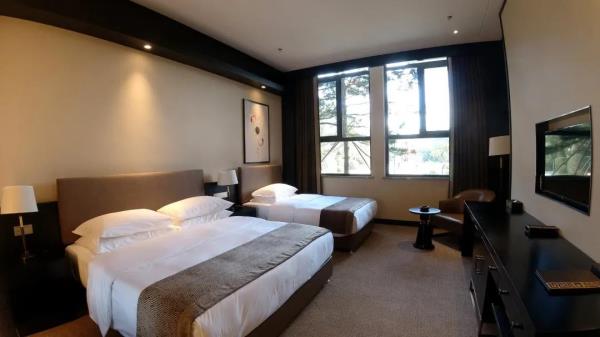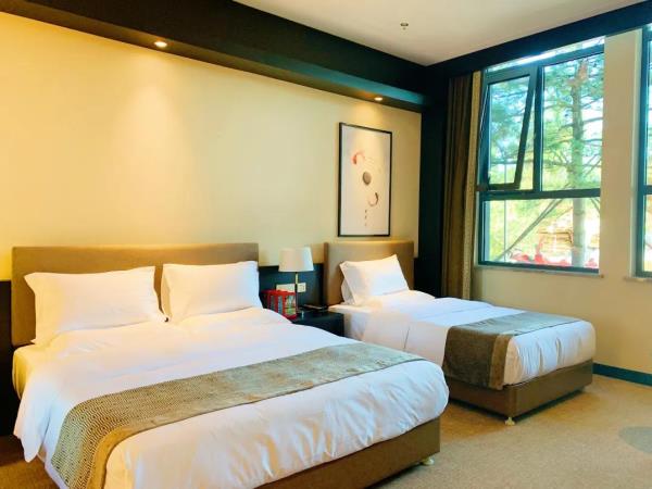 酒店占地3万亩,由湿地公园、养生温泉、滑雪场、餐饮住宿、生态农业组成,豪华独栋别墅房费内含早餐,提供私人管家服务,每个别墅都为两层建筑,自带小院,入住可享受私密泡池。