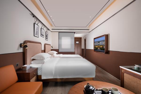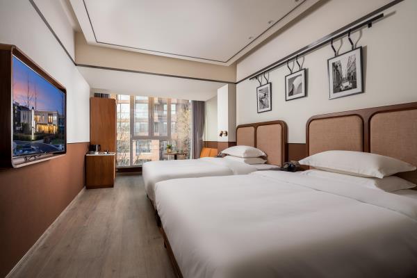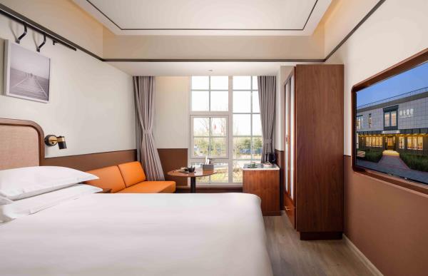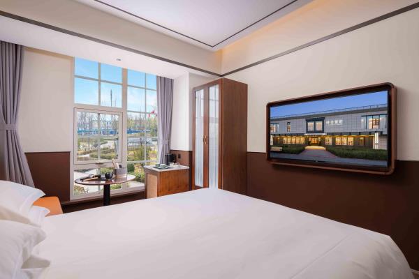 【距离环球影城开车35分钟】 酒店位于北京南四环中轴线上,旺兴湖公园之中;周边配套设施齐全,公园众多,放眼望去,全是春季盎然的绿色;打开窗户,饱含负氧离子的空气扑鼻而来,是名副其实的花园中的酒店。 酒店是时光漫步酒店集团旗下在2020年全新推出的轻奢品牌,将怀旧进行到底,以”艺术的怀旧和怀旧的艺术“为设计理念,全新升级而来。更大的空间,让怀旧的艺术在此升华;更宽阔的视野,让艺术的怀旧在此停留。墨绿配金,作为时光赞歌品牌的主打色;撞色咖啡,是时光漫步客房的主题色。避开都市的喧嚣,怀旧的气氛在此停留、升华和顿悟,这就是时光赞歌酒店。 酒店有150人的高端会议室,并配备超大多媒体体电子屏,满足各种会议需求,洗衣房、健生房等配备齐全,满足日常生活需求。客房配有沙发,茶具,茶几等设施,方便自己的同时也满足会客需求。