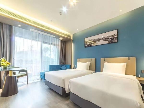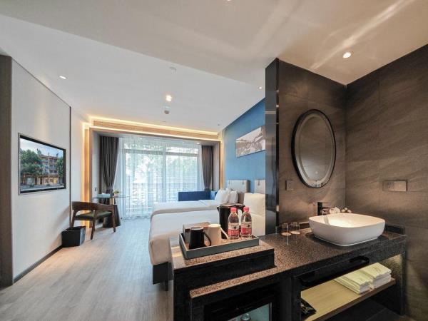 乌镇,这个被誉为“中国最后的枕水人家”的江南水乡,承载着7000多年的文明史和1300年的小镇故事。酒店位于乌镇西栅外围繁华商业街核心位置,周边商铺林立:餐厅、足浴、KTV酒吧、当地特色商店等休闲娱乐场所汇集。距乌镇西栅景区北入口约50米,步行约5分钟可至西栅景区游客中心。离高速出口约8分钟车程。世界互联网大会会址与酒店紧紧相邻,距上海杭州、苏州、嘉兴等周边城市生活圈两个小时。酒店拥有73间典雅的客房及套房,新中式与现代风格相融合的客房设计让您入住更具私密性,尽情享受惬意和放松的假期生活。酒店一楼设有会议室,为您的商业洽谈提供全方位周到服务;另外酒店还提供24小时洗熨烘干自助洗衣房;在“汗栈”健身房内释放您工作的压力;精致而贴心的服务,为您提供一个轻松自在的旅居空间。