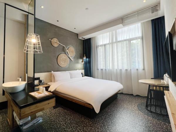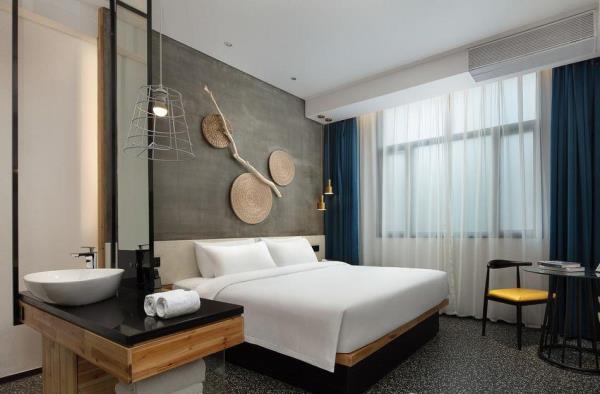 素寓酒店(广州天河客运站店)坐落于广州市天河区,天河客运站为繁华的商业中心和交通枢纽位置,位于地铁3号线及6号线天河客运站,距离地铁B出口约100米,酒店后面就是华南理工大学、华南农业大学、广东工业大学五山校区等,长湴社区、五山社区、元岗社区、龙洞社区环绕四周,同时覆盖广东交通职业技术学院、广东外语艺术职业技术学院(燕岭校区),广东交通职业技术学院、广州芭蕾舞团。地铁一站就可以抵达燕塘,珠江新城,广州东站/体育中心商圈,东方宝泰,正佳广场,天环广场等都是天河区购物,商务的上佳选择。地铁直达广州著名景点:广州塔,北京路步行街,上下九步行街等素寓酒店(广州天河客运站店)隶属于广州素寓酒店管理有限公司精心管理。酒店总建筑面积3000多平方米,楼高6层。楼体采用青水泥及玻璃幕墙设计,外观恢弘厚重、大气新颖、优雅舒适,是一间时尚、现代、智能于一体的精品酒店。素寓臻品酒店所有设施保持了引以为傲的卓越品质,更致力为客人打造全新概念的商旅体验。酒店配备慕斯床垫、主打“人文情怀”品牌商务连锁酒店,出色的设计公司精心设计、雕琢。酒店集智能时尚、现代简约于一体等。酒店特有的青砖水泥木地板、原生态本质作为基调。吊篮沙发时尚复古。酒店外观极具特色,不仅是酒店圈的颜值担当,更是您心中理想的城市度假酒店。