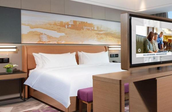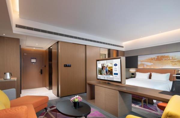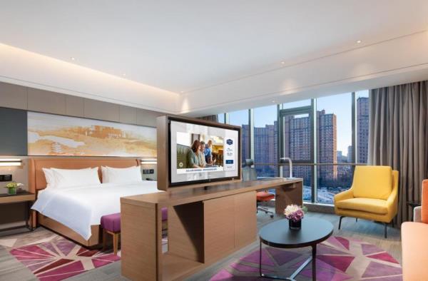 济南奥体中心希尔顿欢朋酒店坐落于济南市高新区舜义路558号,毗邻济南市政府,位于奥体商圈腹地,是济南市政务、商务核心区域。距离汉峪金谷1.5公里,距离济南中央商务区3公里,是一家按照国际品牌标准建设的高端酒店。“欢朋体验,知己之道”酒店设计简约时尚,独具希尔顿欢朋特色的“HUB”大堂,集聚会、休闲及商务功能于一体。酒店设有各式温馨舒适客房156间,客房均使用美国“Hampton Bed”标准的舒达双专利床垫和生态认证床上用品,并采用希尔顿专用“Peter Thomas Roth”卫浴用品,为您打造云端甜梦体验。清新营养的健康热早餐、种类丰富的各式简餐和蔬果饮品,健康格调的欢朋餐厅为您提供高品质的健康饮食体验。乐动健身房配备国际一线健身器材。可容纳100人的精英会议室,满足宾客商务会议需求。“友善、可靠、关怀、周全”是我们希尔顿欢朋酒店的核心价值观。恰到好处的知己服务,使客人享受到高品质的快乐入住体验。我们接待的不仅仅是客人,更是来自远方的朋友。