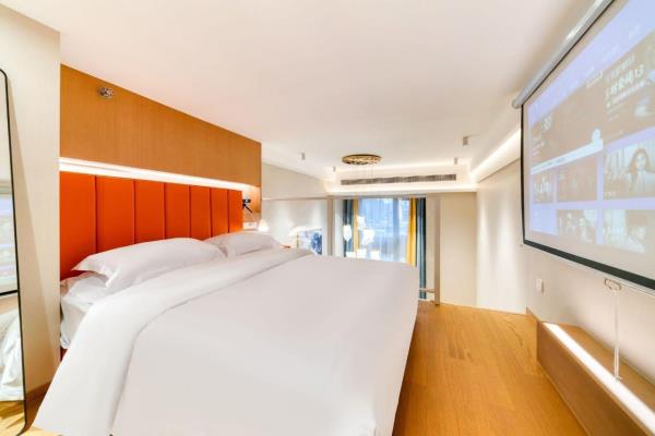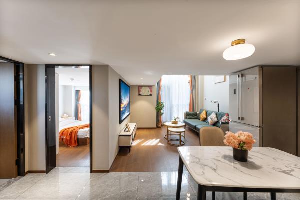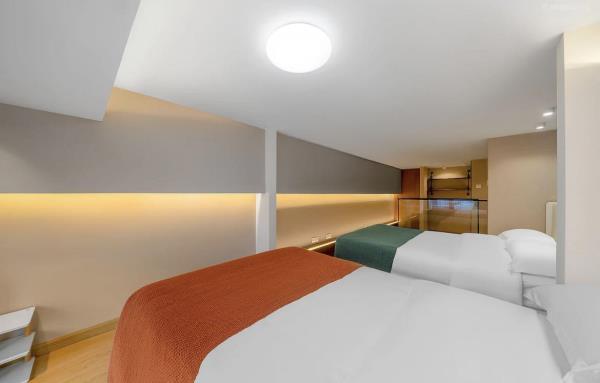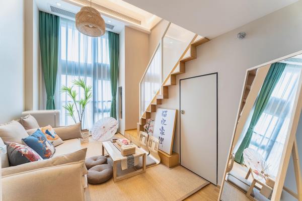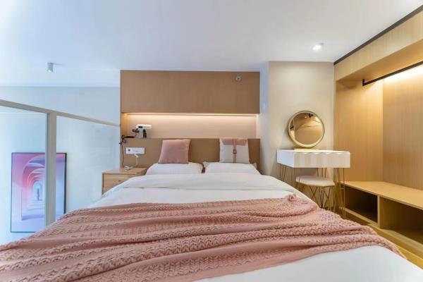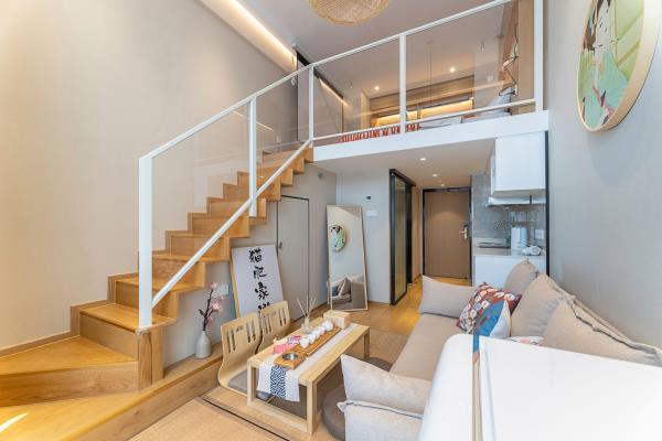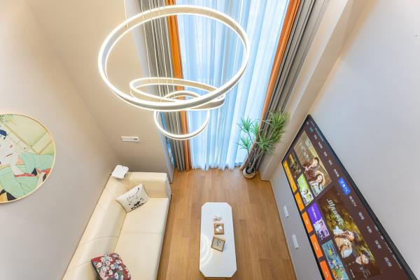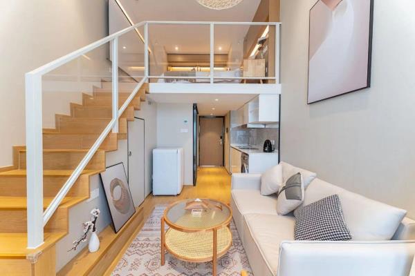 公寓位于和兴路128号悦郡城,是华润旗下建设的高端公寓楼,24小时物业安保,房门都是智能密码锁,安全又省心,距离杭州东站步行约5分钟左右,距离1号线4号线彭埠地铁站步行约5分钟左右,交通非常便捷,公寓楼下就是综合型商场万象汇,吃喝玩乐一应俱全,非常适合来杭州旅游出差的您!房间装修全部采用高端北欧风格,4.9米层高的温馨Loft设计,房间配有冰箱,中央空调,极米高清投影,客厅大沙发,100兆光纤WiFi,24小时不间断热水,室内所有摆设都是店主精心挑选,拎包立刻入住,简单方便,让您出行在外依然享受家的温暖!备注(做饭的客人需要自备厨具用品,房间内一律不提供谢谢)酒店楼下就是大型万象汇商圈,隔壁为东站西子国际场,距离火车东站东广场直线距近在咫尺,酒店楼下配套设施齐全,吃喝玩乐一应俱全,距离杭州西湖地铁直达,是您出门游玩的不二之选。