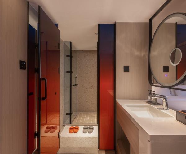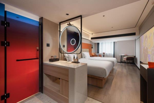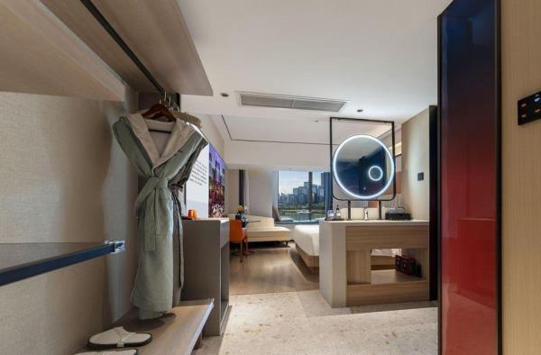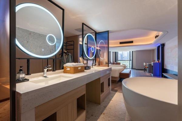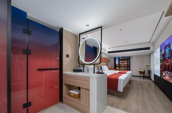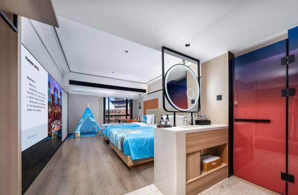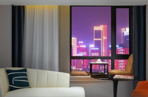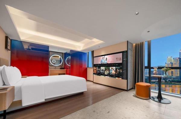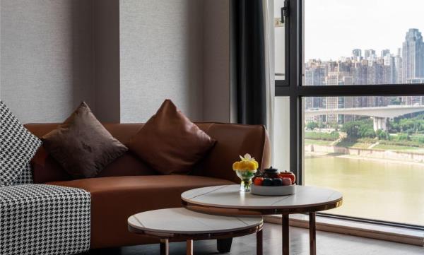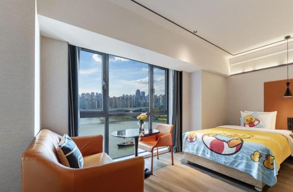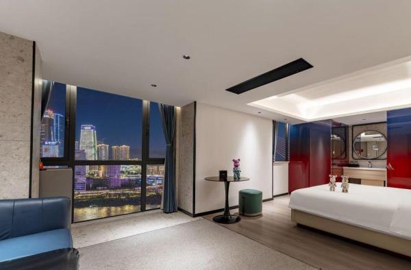 酒店位于重庆市渝中区嘉陵江滨江路113号,临江而建,地理位置优越,坐落于洪崖洞景区和解放碑交界处,欢致品牌定位为中高端年轻潮流化的度假型酒店,【地理位置】酒店位于嘉陵江边,1楼出门步行5分钟就是洪崖洞景区和观景游轮码头,从酒店22楼出去就是网红打卡点位魁星楼,感受8D魔幻重庆的独特魅力,步行7分钟就能到达解放碑商圈。无论是去景点打卡还是逛街购物,都十分方便,简直是“黄金C位”。还拥有轻轨2号线,机场/高铁站往返十分便捷。【酒店特色】全屋智能化,“小度”控制灯光、空调、窗帘和投影仪,简直是懒人福音!酒店还配置有24小时洗衣房,上门取送衣物,解放双手,为入住旅客提供二十余项增值服务,一次性洗脸巾、洗面奶卸妆水、润肤露、发胶、儿童牙具拖鞋、宝宝浴盆、床围栏,儿童推车、海豚按摩仪等应有尽有。【周边美食】• 杨记隆府:重庆老字号,招牌菜有辣子鸡、毛血旺等,份量十足,味道正宗,是体验重庆江湖菜的不二之选。 • 瓜西西火锅:人气超高的火锅店,菜品新鲜,锅底醇厚,他家的耙牛肉和嫩牛肉煮在锅里入味又好吃!• 花市豌杂面:来重庆一定要吃一碗豌杂面,这家的豌豆煮得软糯,杂酱鲜香,面条劲道,拌匀后每一口都超满足。【周边景点】• 洪崖洞:现实版的千与千寻,夜晚开灯后美轮美奂,拍照超出片。沿着江边散步,欣赏江景和夜景,感受重庆的浪漫。 • 解放碑:重庆的地标性建筑,购物、美食、娱乐一应俱全,在这里可以感受重庆的时尚与活力。 • 长江索道:体验空中渡江的独特视角,欣赏长江两岸的美景,感受重庆的山水风光。 • 下浩里:曾被《美国国家地理杂志》誉为“另一个世界”吊脚楼林立,错落有致,展现着山城的独特魅力。烟火气浓,品味着地道的重庆生活。酒店还设有24小时前台咨询服务,为下榻至此的您提供贴心的行程安排。我们希望能为顾客提供如沐春风般的温暖体验,诚邀期待您的光临。