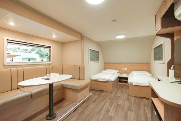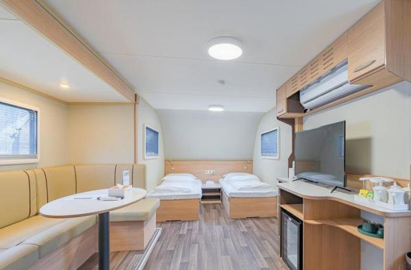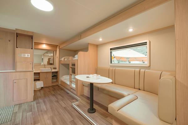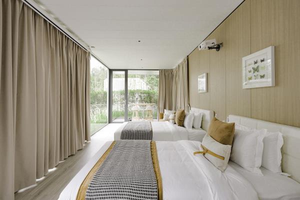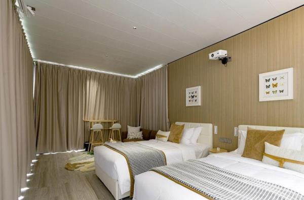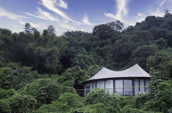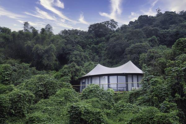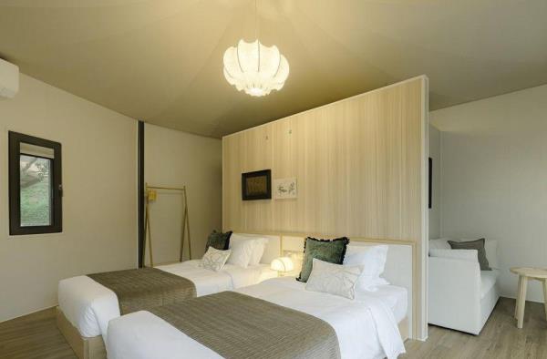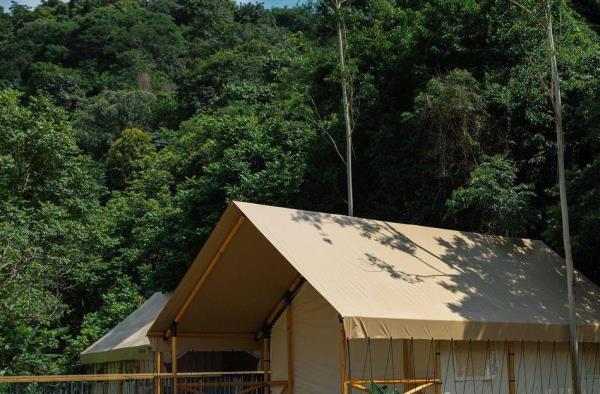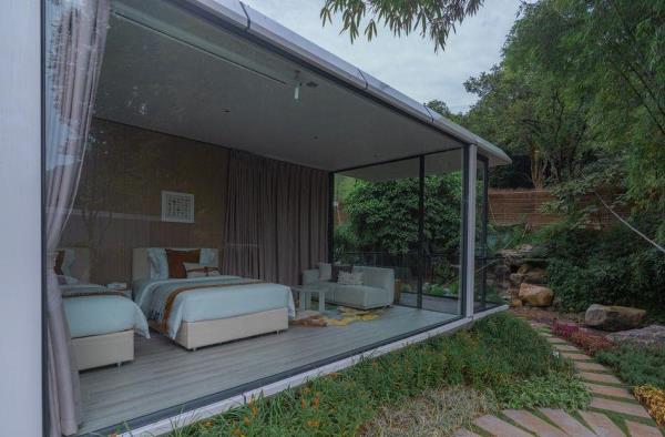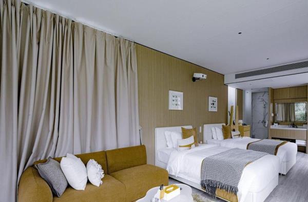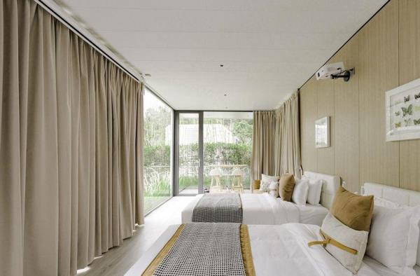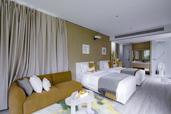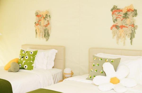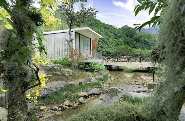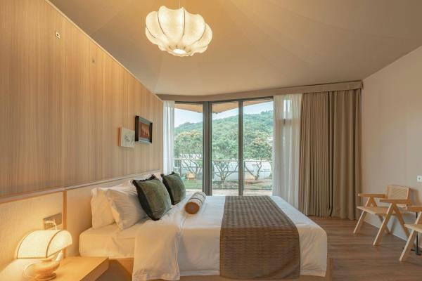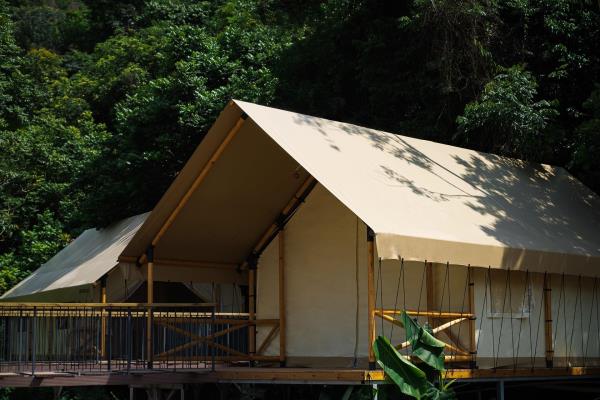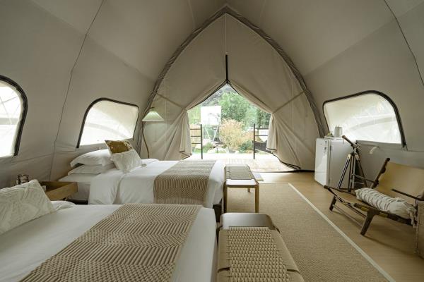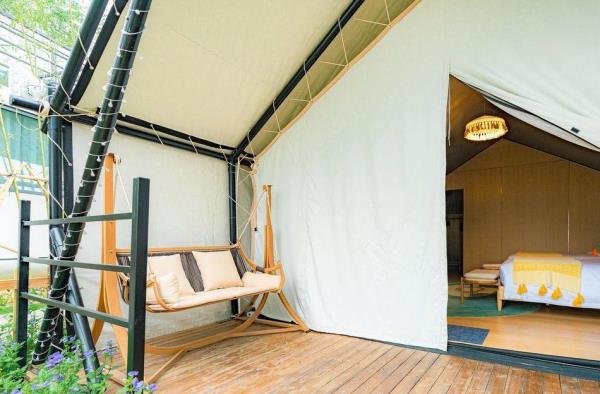 溪⾕营地由20多种不同形态的独栋度假屋组成,每次度假都有新体验,欢乐不重样。营地覆盖26万平⽶森林,3.7倍最⾼标准负氧离⼦,呼吸⾃带微甜。1.2公⾥原⽣溪⾕,百年荔枝树为邻,与⼭涧溪流为伴。阅⼭、听涧、溯溪、野宿。营地还设置了多种⾃然活动,例如⽇夕时光、溪⾕⾳乐会、寻宝猎⼈、⽔枪⼤战、“菇”勇者、昆⾍特⼯魔术科学秀、⽔⽣态研学、动⼒滑翔伞、⻜盘⾼尔夫等,打造年轻时尚的潮流玩法,带来特别的亲⼦度假体验。阅⼭听涧 溪⾕度假:临江仙-溪⾕⼩院——临溪⽽建的溪⾕⼩院是以现代⻛格为设计理念的度假⼩院,将现代⽣活和⾃然景⾊紧密结合,营造出舒适便捷⼜充满⾃然趣味的简约式度假⼩院。每个⼩院都有全落地玻璃幕墙,可以270度环绕式观景,与⼭⽔共⽣,让⼈感受每⼀个瞬间的⾃然韵味。半⼭密林 奢享原野:茶瓶⼉-⽊屋帐篷——建在茂密的森林深处,与⾃然环境融为⼀体,四周都是郁郁葱葱的⻰眼树。朴质、简洁的线条、原⽊⾊的帐篷、实⽊的栅栏......都营造着浓郁的野⽣⽓息。帐篷内部增添各种藤编家饰、⽊质家具、⼾外露营桌椅与⼤量绿植,散发着原野奔放的活⼒⽓息。住进这⾥,感受野性,享受⼾外。溪畔假期 共聚撒欢:满庭欢-溪⾕泡池复式⼩院——临溪⽽建,房间下⾯即是溪⽔潺潺和私家泡池,⾃带露台,特别适合多个家庭欢聚度假,隔栏远眺可窥⻅⼭野中的万物都在肆意⽣⻓。奇趣太空舱 观星邀⽉:茶瓶⼉-太空舱——充满科技感的太空舱露营坐落在⼭⽔环绕的茶园。内部装修以太空元素为主,⽕箭、星空灯、望远镜等饰品作为点缀,更有超⼤⾯积的星空顶,仿佛⼀眨眼便能感觉到银河坠落,置⾝于太空当中。配置了2.5⽶超⼤床,让你⽆拘束躺平在⼭⽔之间,沉醉于茶园的醇⾹之中,感受⽉⾊温柔,流星闪烁。野趣帐篷 露营⻛尚:满庭欢-野趣帐篷 ——⽶⽩⾊调的帐篷是以波西⽶亚⻛的装修⻛格为主,营造浪漫、梦幻的露营氛围。灯饰、帘⼦、藤编椅、床上⽤品……各种内饰都极具巧思,彰显悠闲、⼩资的度假感。⾛进帐篷的那⼀刻,灵魂就得到了⾃由。童趣房⻋ 梦幻星空:诺诺亲⼦房⻋——亲⼦房⻋以天⼈⼭⽔IP形象⼤使-诺诺和酷酷作为房⻋主题,充满趣味性,深受亲⼦家庭的喜爱。每个房⻋都采⽤全屋定制家具、高级⾯料床上⽤品,配套独⽴式空调、卫浴、热⽔器、电视机、⽆线⽹络、24⼩时热⽔、吹⻛机等设施。多款亲⼦主题布置,乐享童趣:精⼼布置的亲⼦主题房间有各种活⼒元素,从布满卡通形象的床品到⽣活⽤具,就好像⾛进了童话世界,处处洋溢着亲⼦互动的甜蜜与温馨,不出房⻔也能让孩⼦畅快玩耍。溪畔、林间、傍⼭……,每个假期都有不重样的度假体验。