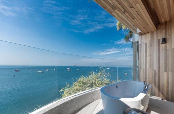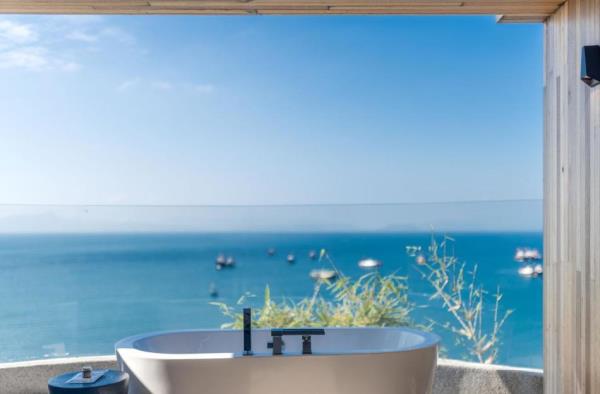 本店位于有着“深圳后花园”之称的大鹏半岛,坐落于悬崖之上,媲美于意大利风小镇波西塔诺,将绝美的蓝白海景,大地色的岩石空间、墙壁纹理感,仿佛身临其境,处处都充满了神秘感。岩石花园、LoungeBar、海边户外餐厅满足了对度假的美好想象。白天,蓝天白云群山和大海;下午,在日落余晖的照映下,品尝精美下午茶;傍晚,泡着浴缸看晚霞;晚上窝在海景房里,点亮一盏暖黄的小灯,感受发自内心的宁静,消散所有的疲惫感。
