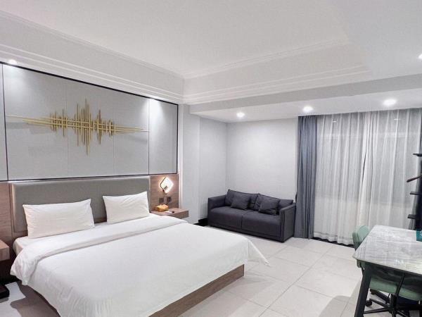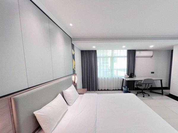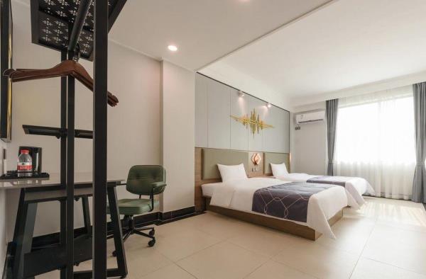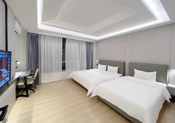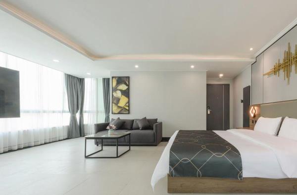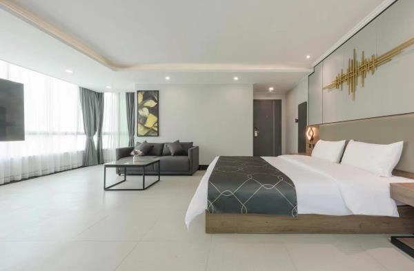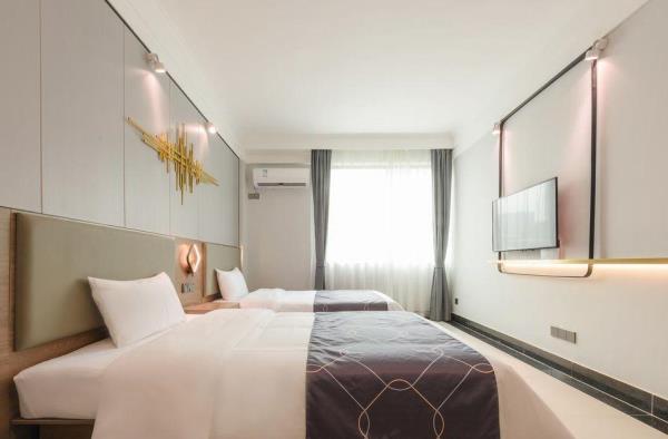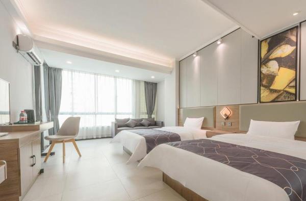 【酒店设施】本店内设停车位,充电桩,多媒体会议室,商务会客区,咖啡厅,早餐餐厅,超40平米宽敞客房,43寸液晶网络电视、高速光纤无线wifi、雅兰优眠床垫、独立分体空调、10秒速热淋浴、洁净封包浴巾、24小时热水供应,独立洗手间、自助饮品区、自助洗衣机、晾晒区、营养早餐等。 【交通】距离万隆城步行2分钟,城北高速口方便快捷,河源火车站约2分钟、去河源高铁站约15分钟,去河源长途汽车客运总站开车约10分钟,总站门口有公交站,约10分钟直达万绿湖景点区及河源音乐喷泉景区。 【旅游】驾车到万绿湖、镜花园景区、河源音乐喷泉、河源客家公园、万隆城、沃尔玛、坚基购物中心均约5分钟即达,去新丰江景区、文化广场约10分钟,去客天下温泉、巴伐利亚庄园、桂山、野趣沟约30分钟。 【餐饮】附近有特色客家菜、各种风味饭店、河源特色小吃、宵夜、甜品、麦当劳、肯德基、星巴克等中西餐饮分布齐全。站前路美食街及大同路美食街就在附近。 【休闲娱乐】旁边有义乌小商品批发市场、电院、品牌KTV、服饰、特色餐饮、网吧、沐足桑拿水疗一应俱全。