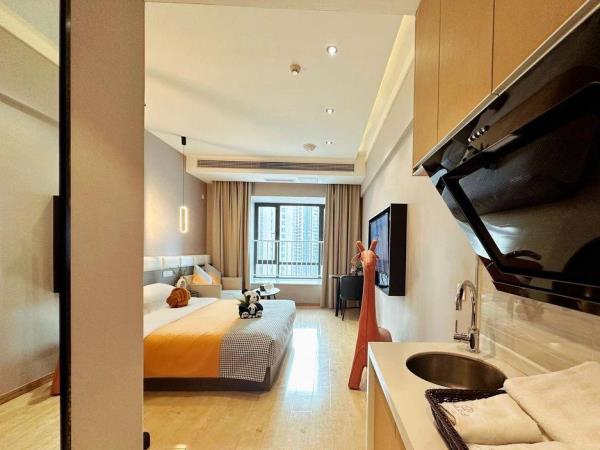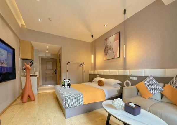 酒店位于金州大道建工嘉寓1栋1楼,地铁站5号线重光地铁站3A出口,毗邻香港置地广场、光环购物中心、约克郡,爱情海购物中心,照母山森林公园,欢乐谷等,地理位置优越,交通便利,酒店客房按照中高端酒店标准投资打造,酒店以“干净”“舒适”的原则给您提供休闲办公的住宿环境,酒店附近美食汇集,您也不用跑到解放碑就能吃上正宗的出去火锅,入住本酒店基本能满足吃喝玩乐,让您有一个非常愉快的旅行。距光环购物中心仅2分钟车程。建议步行。距火车北站15分钟车程。距地铁5号线重光站3A出口步行3分钟。距重庆江北国际机场T2航站楼20分钟车程。毗邻光环购物中心,爱情海购物中心。酒店以绿色、舒适体验为核心,通过对睡眠、绿色自然亲肤及特色服务的细腻打造,为您提供一个自然放松的自然空间。酒店采用高清电视,品牌卫浴、高品质棉品以及依据东方睡眠习惯而定制的独特安睡床垫;另提供24小时热水、空调、无线网络、洗衣机等便利设施。酒店位于建筑高层,酒店全景飘窗,视野开阔令心情瞬间无比舒畅;精选独特的豪华沐浴套装更是让入住体验酣畅淋漓;带来更好睡眠体验。酒店有停车场设施,开车的朋友可以直接地图导航“酒店名称”,抵达后进入地下停车场。客房布草由正规洗涤厂商负责清洁,严格管理施行一客一换的布草更换制度。照母山森林公园,园博园,重庆有名的景点洪崖洞、解放碑(轻轨5号重光站[乘坐4站]冉家坝换成6号线到小什字(可直达解放碑,洪崖洞)。周边有重庆欢乐谷,园博园,光环购物公园,玛雅海滩水公园;我们致力于打造高性价比超值入住体验,我们将以热情专业的服务期待您的到来,期待与您相遇!