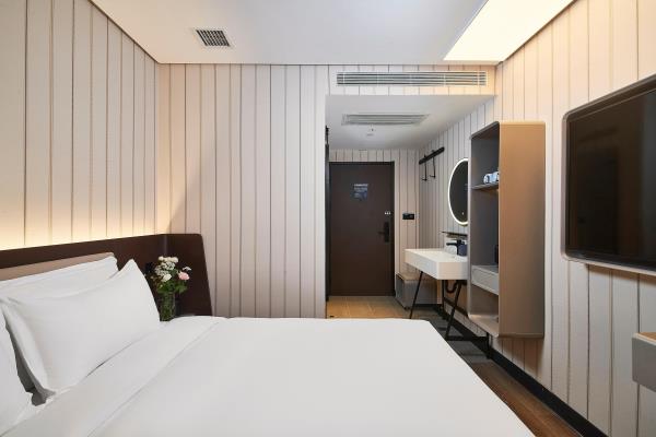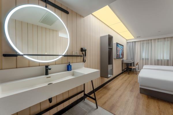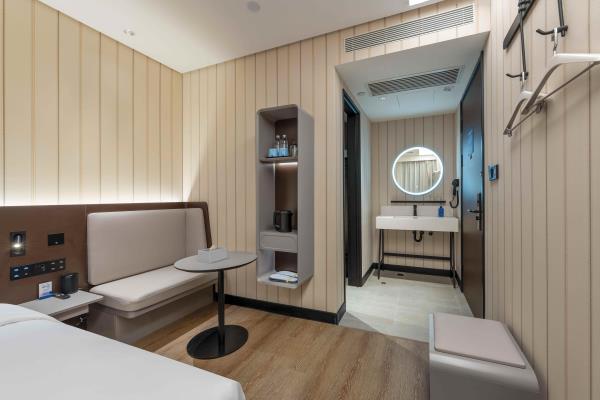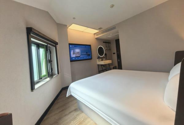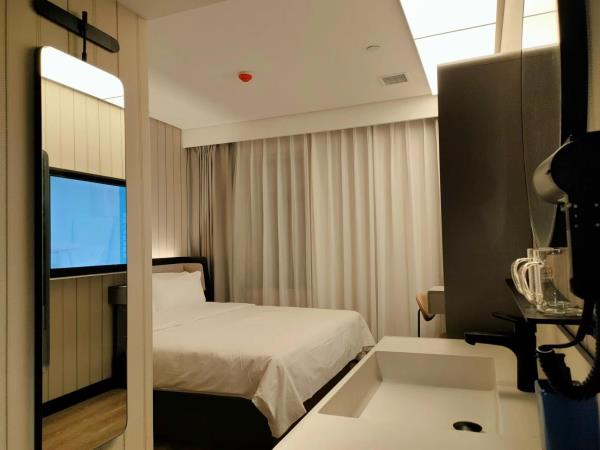本酒店位于北京市朝阳区建国门外大街18号。 (提示)酒店采用汉庭3.5智能家居,大堂配备AI送物机器人,24小时自助洗衣,自助熨烫。 (位置)周边有1号线.2号线建国门站B东北口,步行8分钟即到。 (交通)北京站地铁2号线1站地到达。 (景点)距离天安门 故宫 前门大街 大栅栏 地铁25分钟左右,公交车120路直达。 后海 南锣鼓巷 什刹海2号线44分钟左右直达,公交车58路。 (商城)赛特商城 国贸商城 世贸天阶 万达广场 王府井购物。 (医院)首都儿研所附属儿童医院步行16分钟左右。 首都医科大学附属北京同仁医院地铁2号线直达。 北京协和医院东单院区地铁1号线 公交车1路直达。