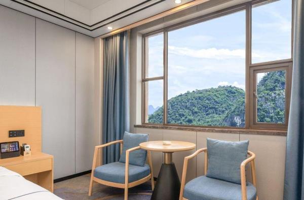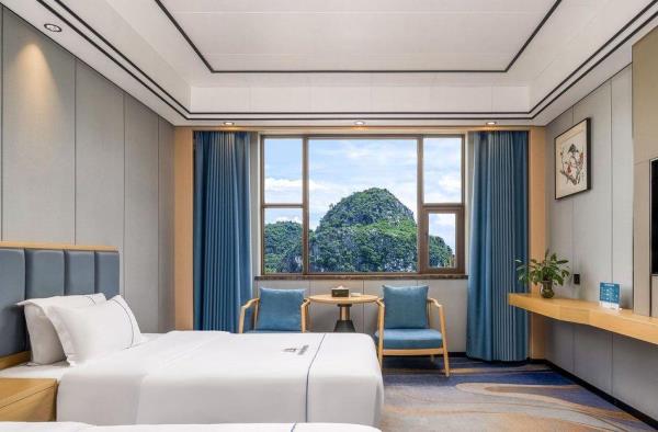 酒店是惠林顿集团倾力打造的高端智能化酒店,桂林百度全智能酒店,为桂林高标准酒店科技化创新的领航者,实现了商务与科技结合的高标准酒店。酒店座落在世界旅游名城桂林市七星区,东临东部环线,北靠高铁、机场环线,西至各大著名景点,南为天然氧吧森林公园,尊享商圈、景区,交通极其便利。酒店独特的三景融合设计拥有多间客房和国际商务会议中心。其中行政高级套房,特色茶艺客房,休闲娱乐客房,智享山景豪华房,商务客房及容纳200人的国际商务会议中心。酒店全方位满足您商旅服务、康乐休闲、特色餐饮需求,给您旅途和商务提供最贴心的服务,感受最纯正的桂林!全智能化设施、先进酒店商务中心、高品质睡眠系统、真正360度呵护您的旅途,尊贵的入住体验、极致的酒店!当山歌唱响时您正置身于《刘三姐》拍摄地,穿越时空的感受,沁人心弦的景观,此时的你我就是阿牛哥和刘三姐,从日出的鸟鸣到日落的黄昏,仿佛时间静止,让您沉醉在本酒店带给您的桂林山水之中……