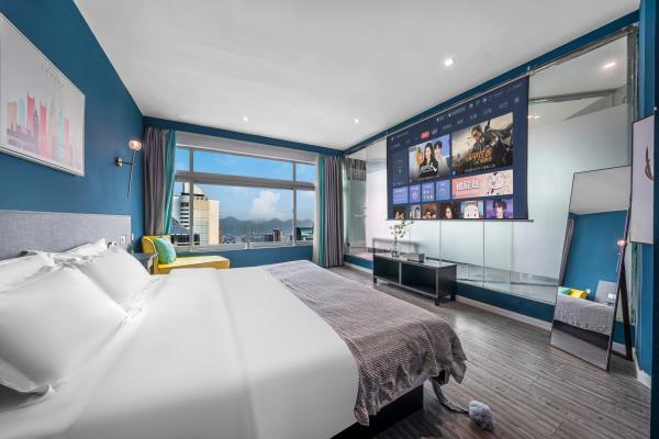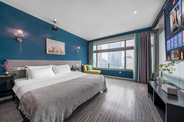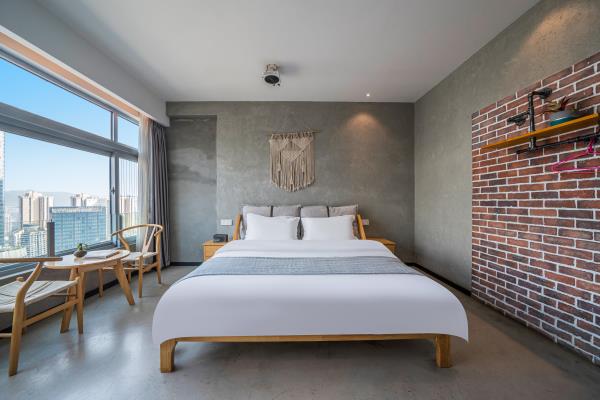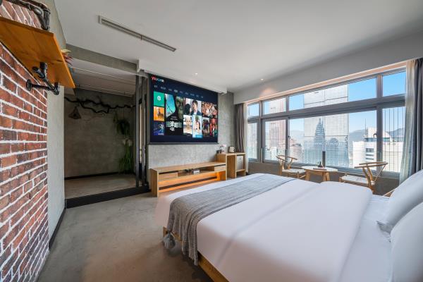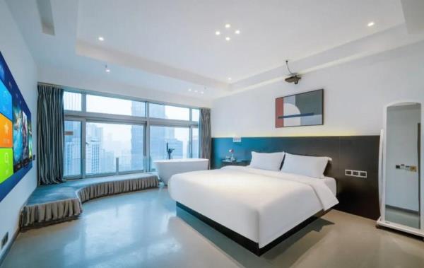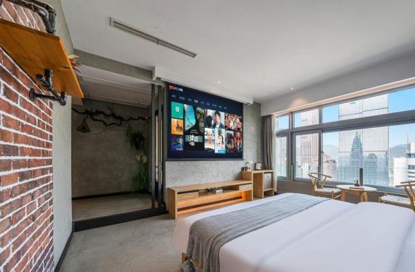 酒店位于重庆市渝中区青年路7号时代豪苑D座31楼,地处重庆解放碑核心商业步行街,商业圈中心,交通便捷,位置优越,楼下就是临江门地铁站1号出口。酒店离网红地标景点洪崖洞,朝天门来福士,长江索道,步行10分钟可达。距离机场大巴步行约2分钟,机场到酒店有直达轻轨、机场大巴,到磁器口也是轻轨直达。附近的购物方便,重百、王府井、美美百货、WFC购物中心,酒店楼下24小时安保,24小时为您提供安全保障酒店有年轻人喜爱的网红侘寂风,也有成熟人一偏爱的商务风,个性情侣风,还有家庭出游风,各类汤池风,拥有多种类型房型,可满足贵宾的需求,可带来舒适的体验,酒店房间配备独立的WIFI和百兆光纤,让您在刷视频, 追剧时不再漫长着急等待。部分房型独立高清投影仪,支持手机投屏功能。房间都为独立空调、24小时热水。客房家具均使用环保材料,高品质洗漱套装和香氛沐浴用品。轻柔亲肤自然床品,窗外就是解放碑地标和江景,舒适的房间带给你旅途不一样的感受。酒店有多部部电梯直达,非常方便。我们将以优质服务,安全舒适的生活方式提供给酒店的每一位来宾,在这里无论是独处、玩聚、还是商务出行都能得到非一般的惊喜与体验,期待您的光临体验