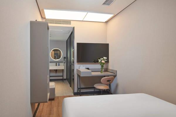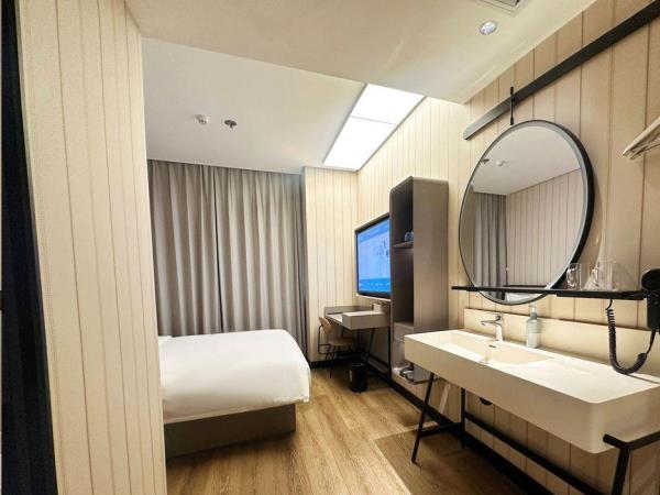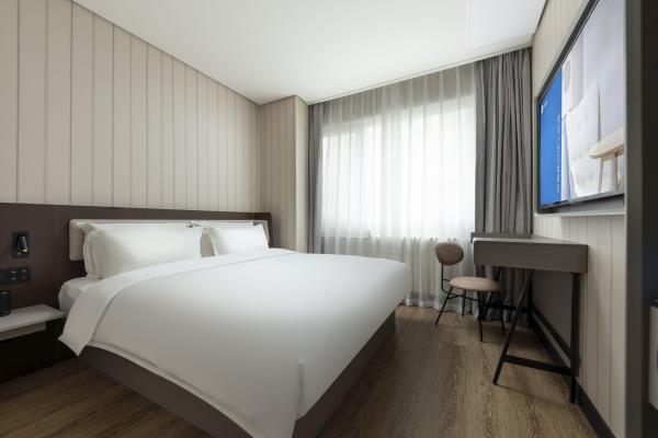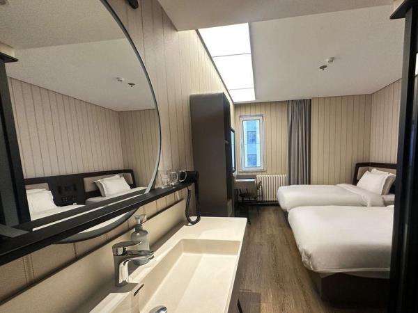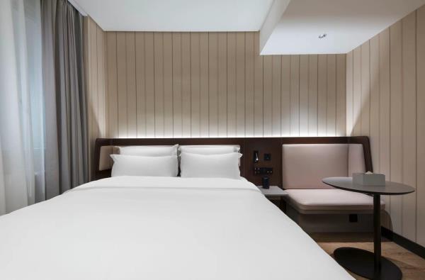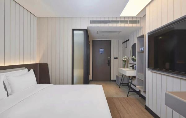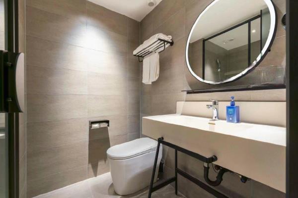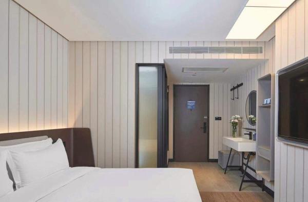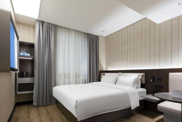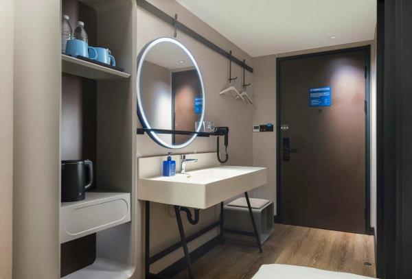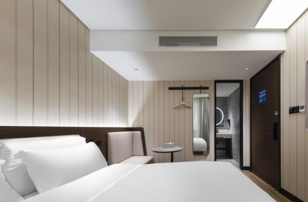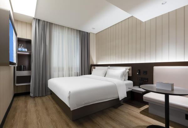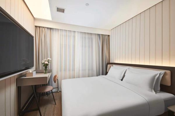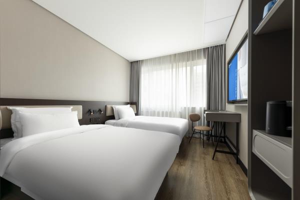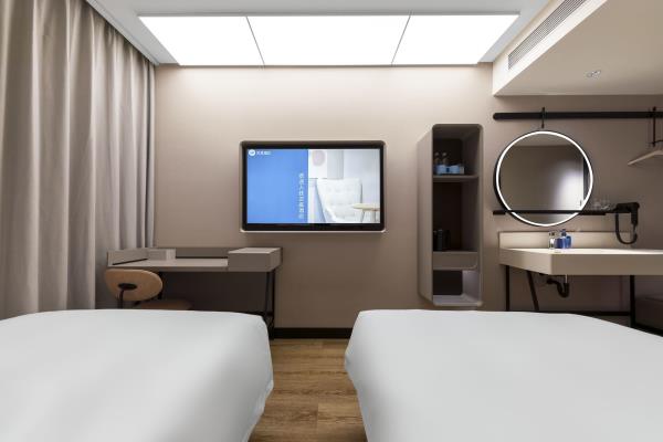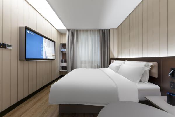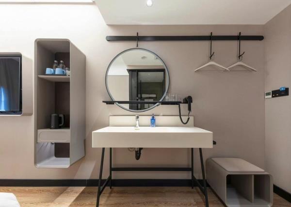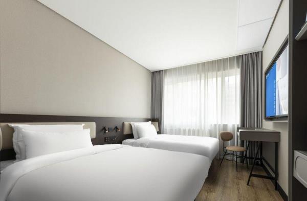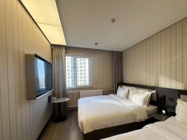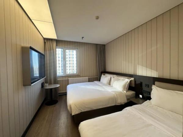 【位置】北京市朝阳区司辛庄路26号康泉小区9号楼。【首都机场】打车预计用时35分钟,大兴机场打车预计用时80分钟。【火车站】北京南站打车预计用时50分钟;北京站打车预计用时45分钟;北京西站打车预计用时50分钟;北京丰台站打车预计用时60分钟。【交通】酒店周边690路 364路 532路 615路等公交路线直达市内各个主要街道,距地铁1号线八里桥站约1000米,【周边学校】距离北京清华大学附属中学管庄学校1.89米,步行预计用时2分钟。【医院】酒店距首都医科大学 附属北京朝阳医院(常营院区),打车预计用时13分钟,北京中医药大学东直门医院(通州院区),打车预计用时15分钟。【周边配套】距离万达广场(北京通州店),打车预计13分钟 ,万豪购物生活广场,步行预计用时12分钟,枫尚奥特莱斯,打车预计用时11分钟,中百世贸商城, 打车预计用时9分钟。【设施】酒店全楼无线网络覆盖,免费洗漱用品,房间可电视投屏,送物机器人,免费洗衣房烘干机,行李寄存柜 【周边景点】距 北京环球度假区,打车预计用时26分钟,什刹海,打车预计用时36分钟。 汉庭3.5注重空间利用和用户体验。通过融入潘通蓝与莫兰蒂粉色的舒适配色以及干净的线条,新增自助入住,机器人送物品、自助洗衣,自助行李寄存等人性化自助服务场景,提供便捷,高效的住宿体验。汉庭酒店的对客理念是提供亲和和便利,好而不贵的出行体验,强调干净,温馨,简洁和高效的服务。