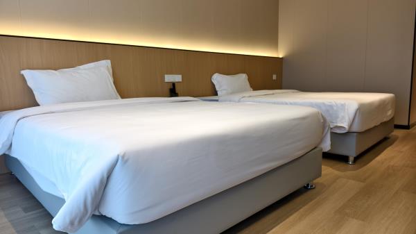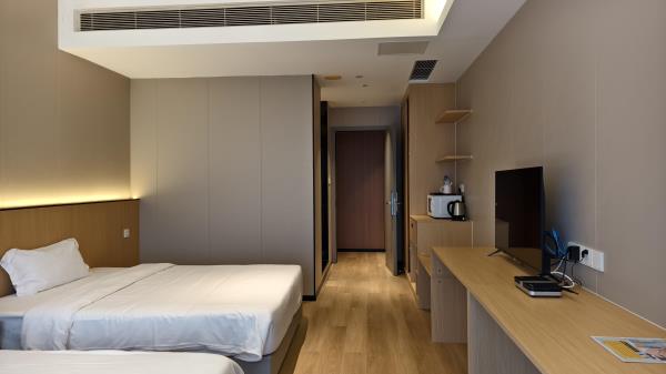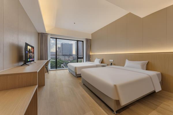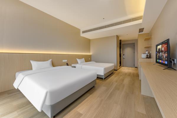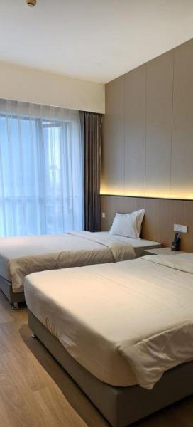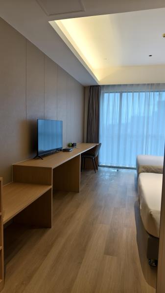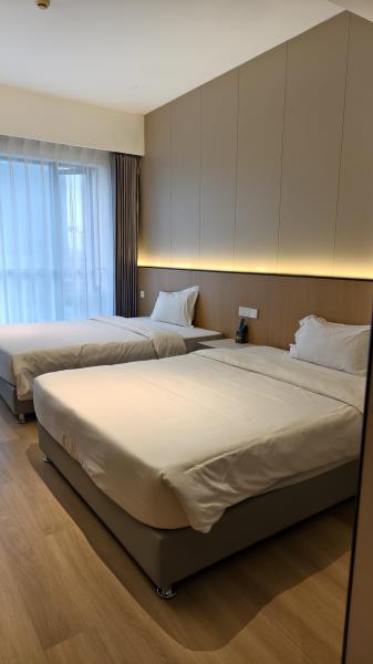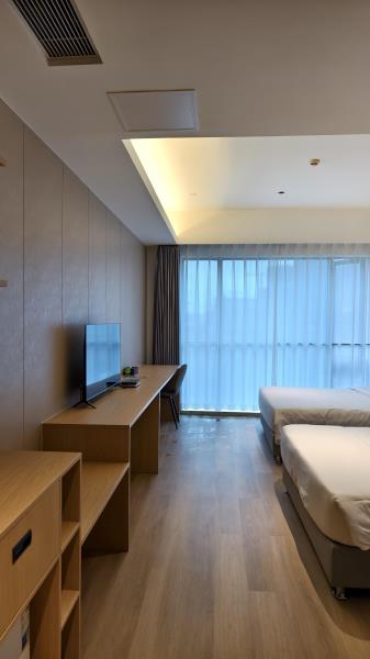 客房设施:遮光窗帘、手动窗帘、备用床具、空调