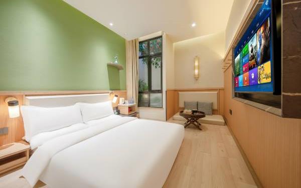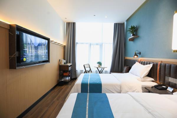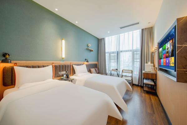酒店位于火车站东广场6号售票大厅右侧、住在酒店即可看见火车、郑州站广场。紧邻二七广场、德化商业步行街、华润大厦、大卫城、银基商贸城、小商品批发市场等商圈;距离郑州站进站口步行约3分钟,距离二七广场步行约8分钟,距离郑州市第三人民医院步行约8分钟,郑州大学第五附属医院步行约10分钟。房间设有新风系统、智能语音管家-小度,内含城景商务大床房、轻奢雅致大(双)床房、尊享商务双(大)床房、巨幕影音大床房、玩转主题亲子房、校园记忆四人间等可满足各类人士的住宿需求。房间配有健康环保的乳胶床垫、舒适的荞麦枕和记忆棉枕、遮光性好的电动窗帘场景灯光等设施。二楼花园大平台坐览郑州站广场、大厅带有电动水帘、许愿留言墙打卡最美郑州站;酒店以“倾尽全力创造服务”的使命,为过往郑州站的商旅人士提供超值的性价比以及舒适、洁净、安全的旅居环境。经过一座城,寻觅一间房。我们,在这里,等您来。