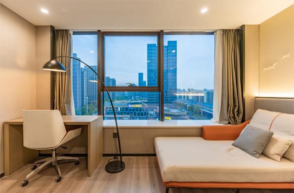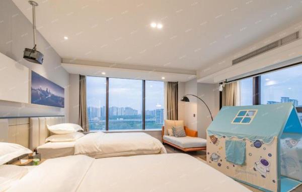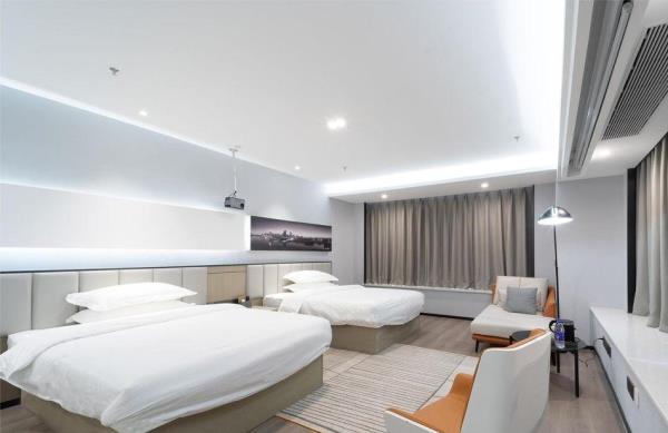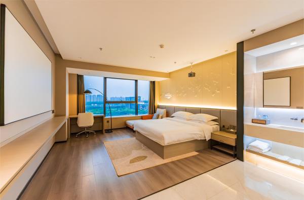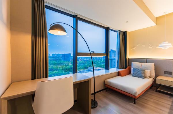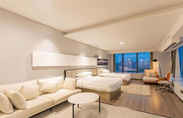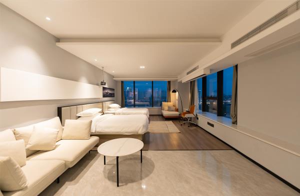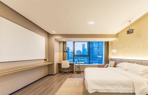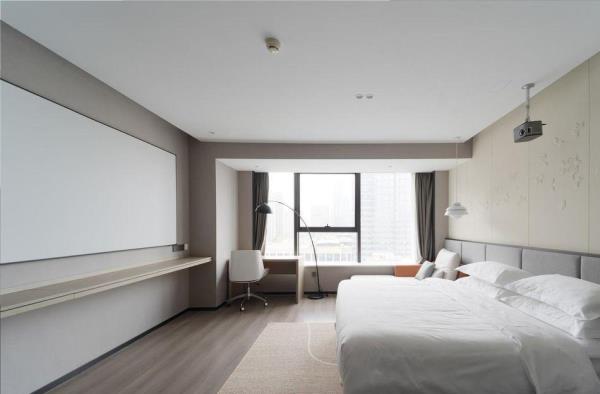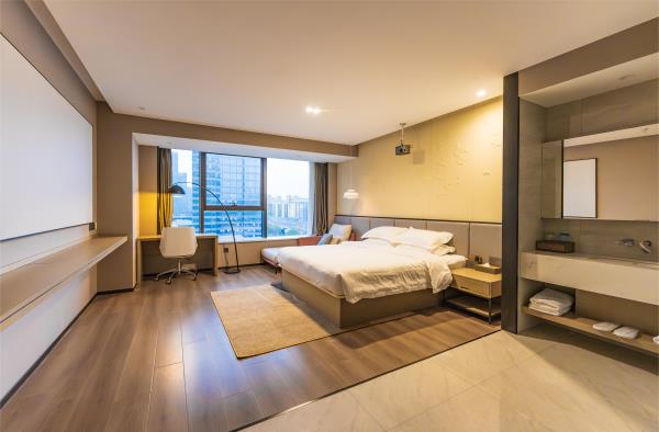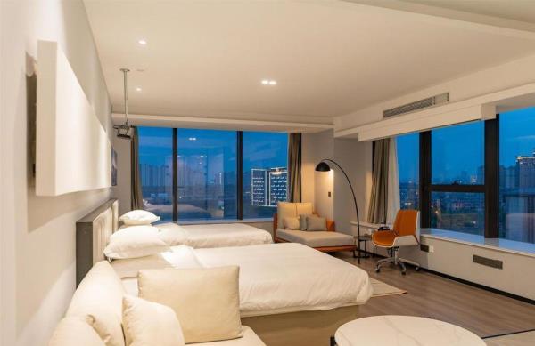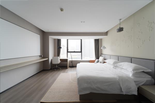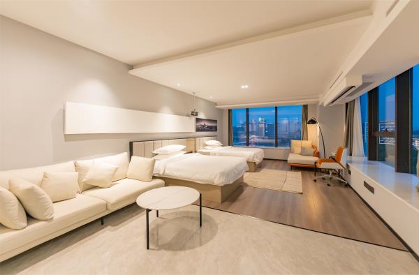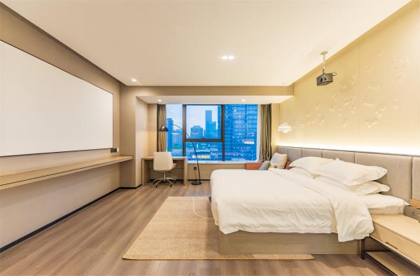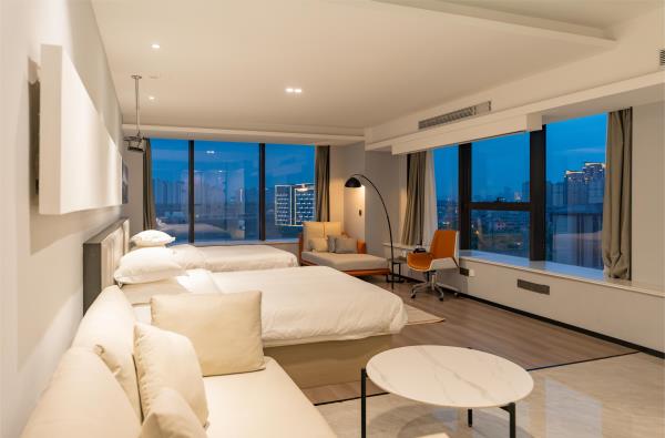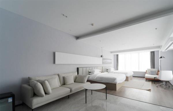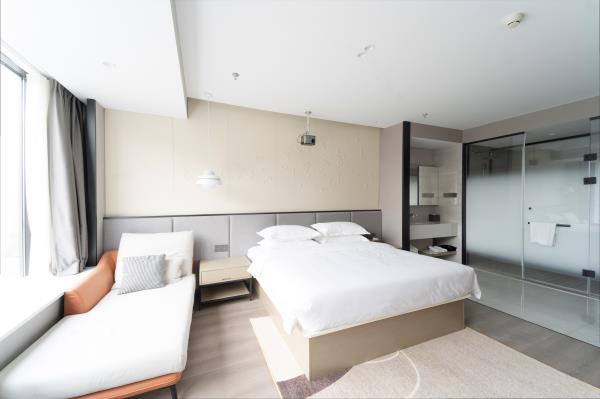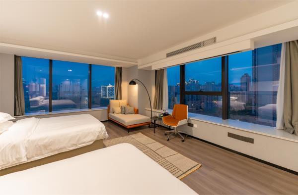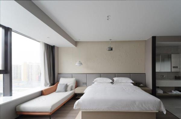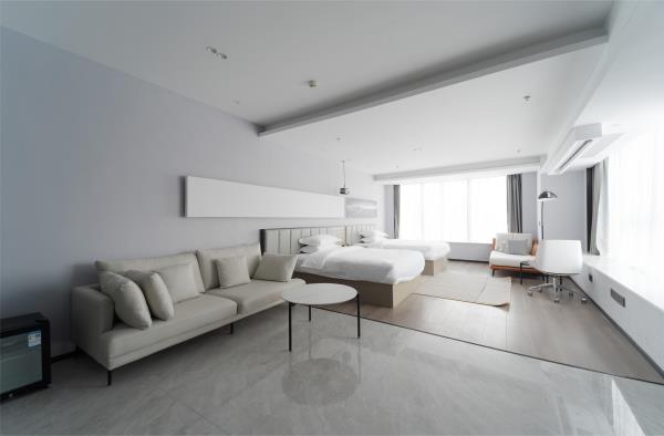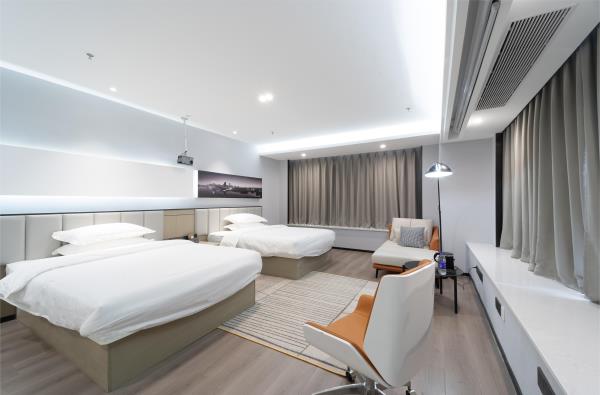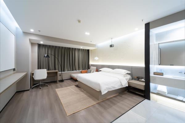 本店客房数量多间,房型主要分为大床间、标准间、套间三个户型,客房全系列标配梦百合零压舒适床垫,同时配套日立中央空调、私人观影系统、箭牌高端卫浴等品牌配套设施。 酒店整体装饰风格为商务、休闲系列,同时为考虑商务配套酒店增设了自助洗衣间及自助早餐厅及停车位,愉悦的体验环境、简约时尚的住宿空间一定是您商务差旅、休闲娱乐的选择之地!