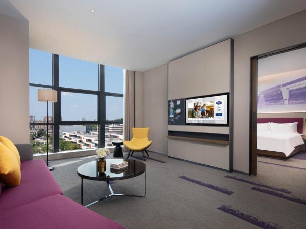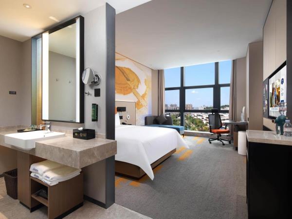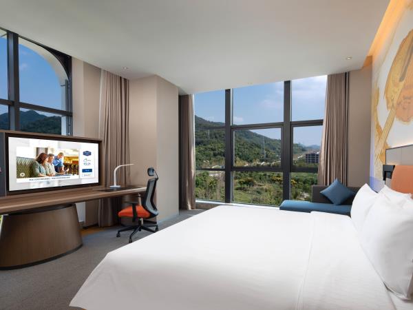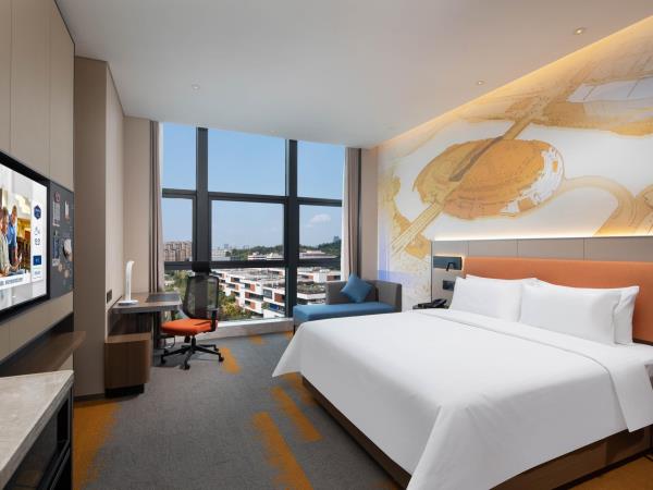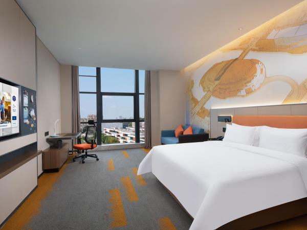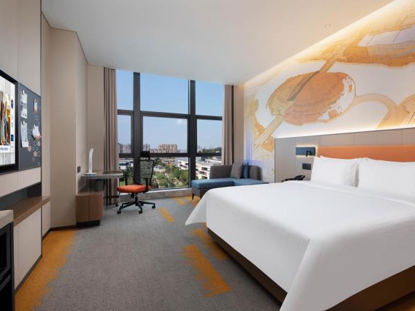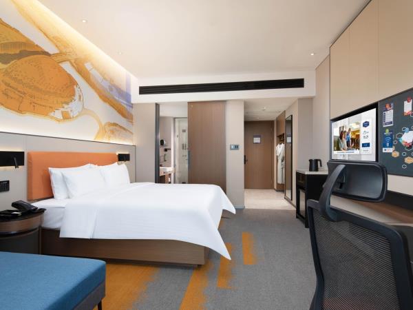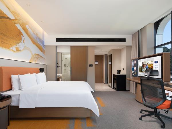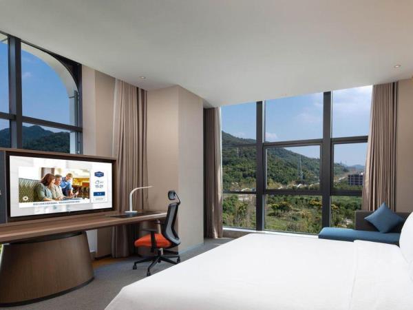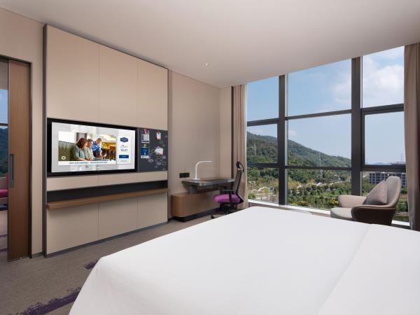 希尔顿欢朋是希尔顿旗下的中高端酒店品牌,2014年,希尔顿欢朋进入中国,除了使欢朋品牌在全球大获成功的许多特色服务——包括免费健康热早餐、免费高速WiFi、清爽睡床以及酒店成员提供的“友善、可靠、关怀、周全”的服务以外,值得宾客期待的还有中国本地化特色的设施与服务。 德清希尔顿欢朋酒店位于素有杭州后花园之称的德清县,地理信息小镇内。毗邻世界地理信息大会会址-国际会议中心,与塔山隔空相望。酒店设有各式风格客房和独具希尔顿欢朋特色的“HUB”大堂,集聚会、休闲、商务于一体。房间使用美国“Hampton Bed”标准的舒达双专利床垫和生态认证床上用品,并采用希尔顿专用“Peter Thomas Roth”卫浴用品。集健康格调的欢朋餐厅,乐动健身房,精英会议室和恰到好处的知己服务,使客人享受到高品质的快乐入住体验。