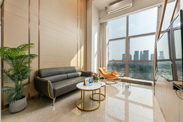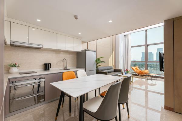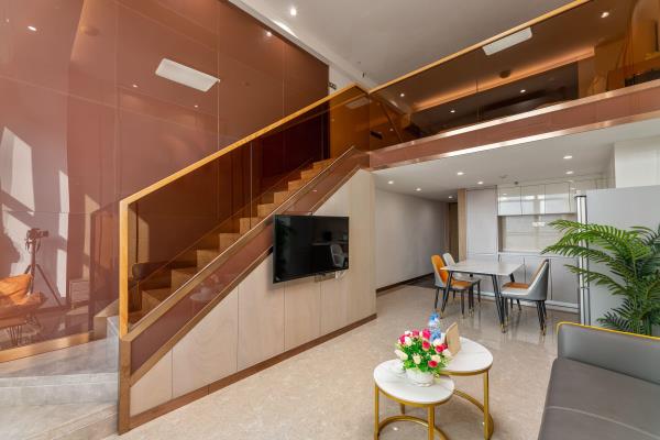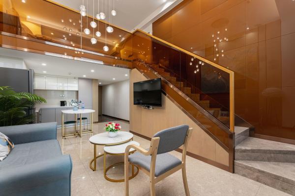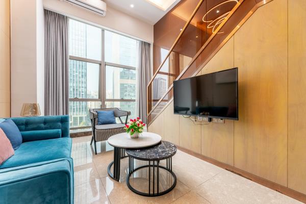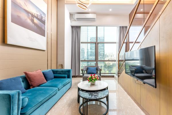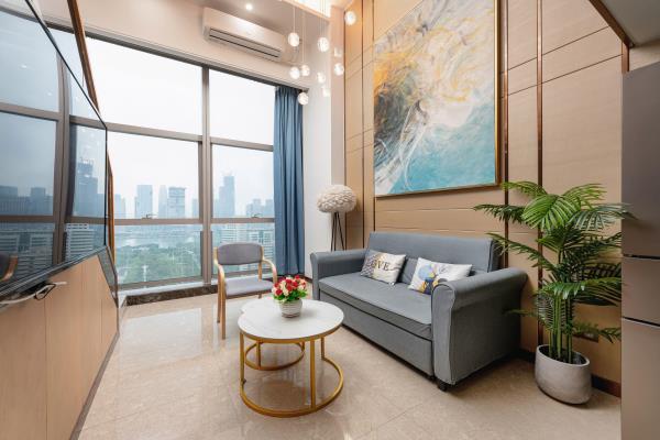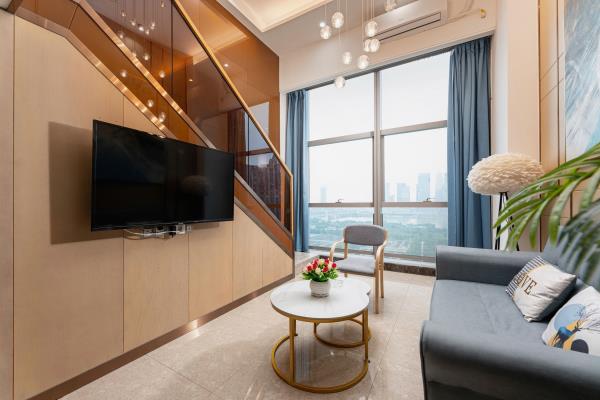 公寓位于天河区花城大道西侧和御御公馆,地处广州市最繁华的珠江新城中心商务区。毗邻琶洲国际展览中心、小蛮腰(广州塔)、广东省税务局、广电平云广场(南方电网)、美国领事馆、花城广场、海心沙码头、太古汇。距地铁5号线潭村地铁站很近,紧邻华南快速,交通四通八达。以北欧轻奢的设计风格,让宾客享受轻松自由、舒适的家居体验。所有房型均是复式loft大户型空间,可一览城市璀璨夜景、江景。酒店环境幽雅,内装精美,设施先进,功能齐全。24小时热水,高速WIFI,自动保安消防系统,24小时管家服务。酒店内设舒适大床房、尊享江景房、豪华双床房,亲子家庭房,是您旅游度假、商务出差的理想下榻场所。酒店愿以舒适的环境,优质的服务,合理的价位,赢得您的信赖。真诚欢迎朋友们光临!