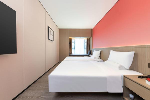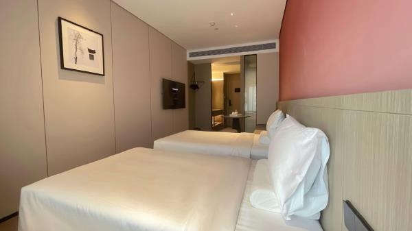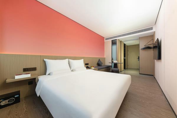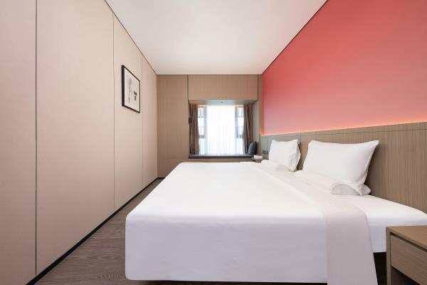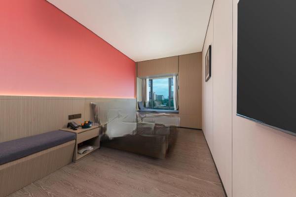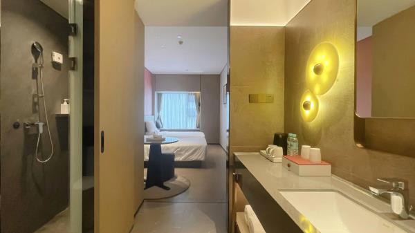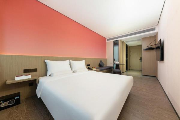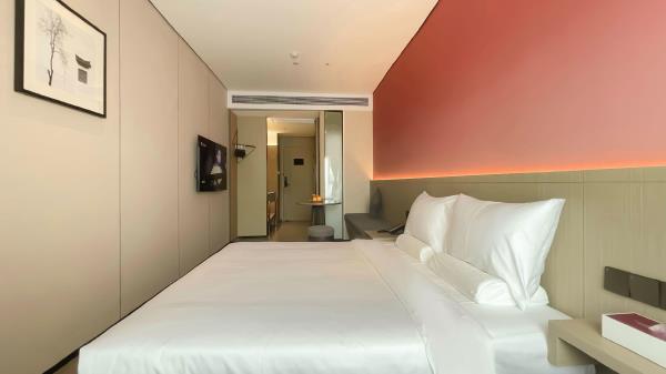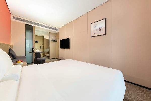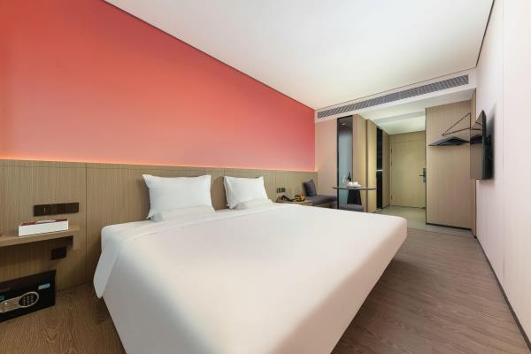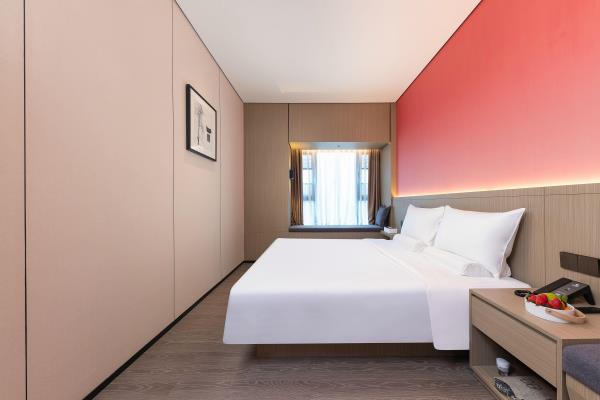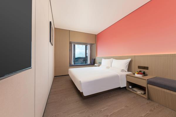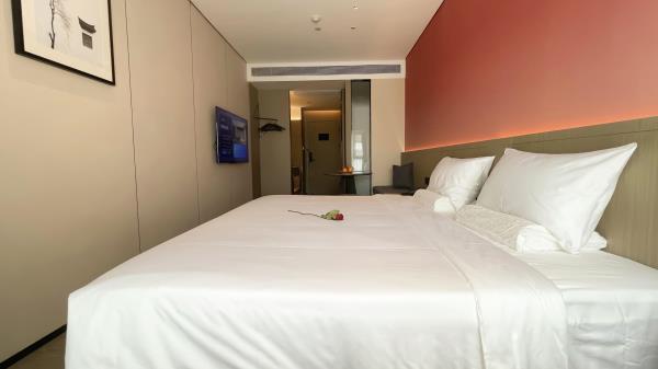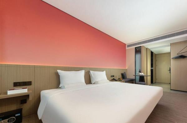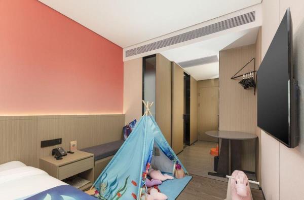 酒店位于顺德区大良105国道旁美的悦然广场大型商场地标综合体3座,距地铁3号线欢乐海岸站车程8分钟,广州南站车程 35分钟左右;毗邻顺德大良新城区政府及金凤凰广场;楼下大型商场悦然广场、周边大信广场等商业配套;顺德欢乐海岸 PLUS、顺峰山公园和容桂渔人码头等景点均在酒店附近。并配有大型停车场、丰富的中式自助早餐、自助洗衣烘干房和健身房,同时还配备了智能机器人以及高速无线网络,地理位置优,交通便利,是商务出差、亲子出游、观光购物宾客的理想居所。酒店由石湾陶瓷大师曾鹏亲自提名,产品设计打破“千篇一律”,是以“陶铁艺岭南水乡文化”为主题的中高端精品连锁商旅酒店。客房配备55-65英寸电视支持手机投屏,零压睡眠枕。卫生间干湿分离,臻选顺德品牌洗沐用品、这些好物使生活如此美好,以喜悦心享生活。踏入喜悦门,拥抱喜悦!