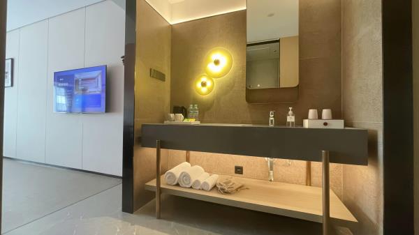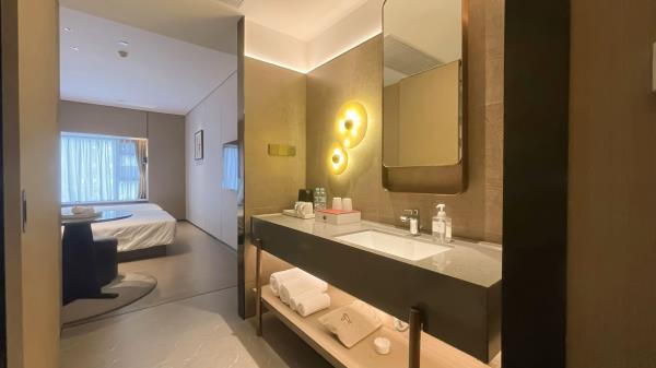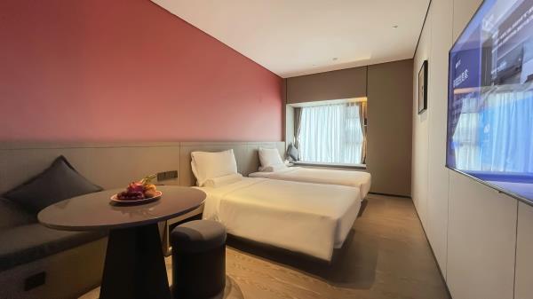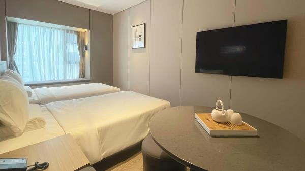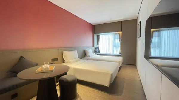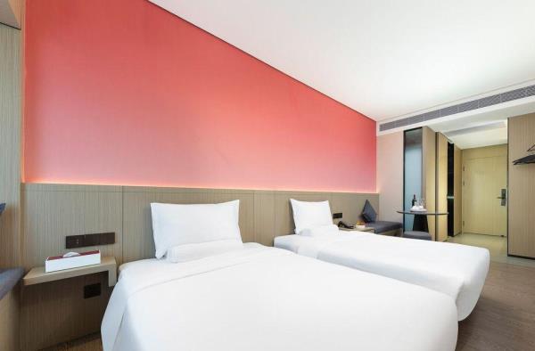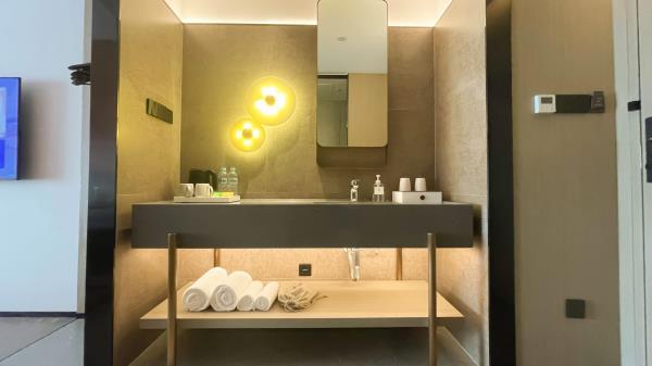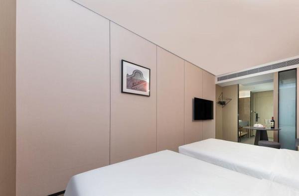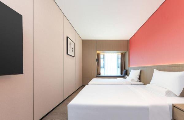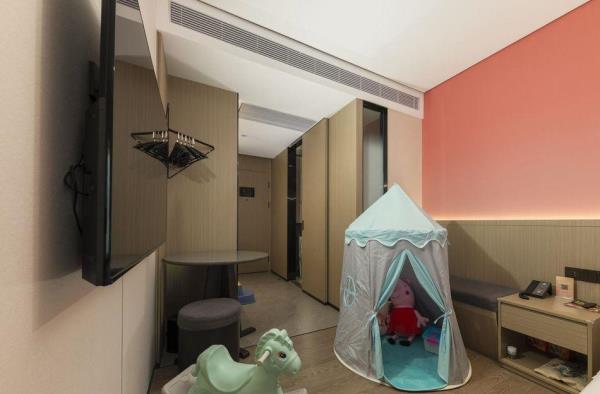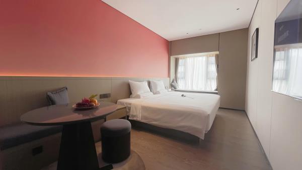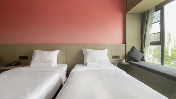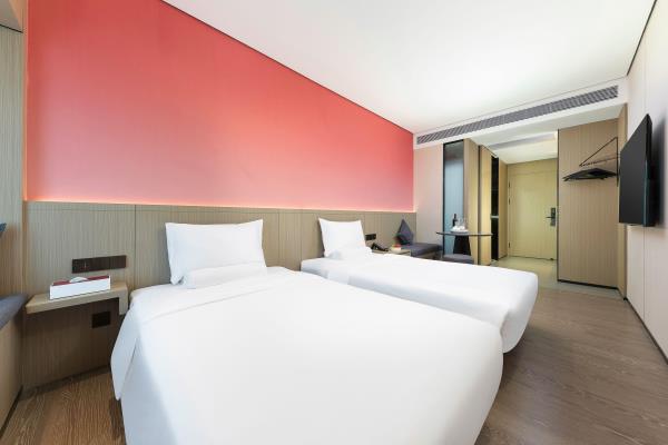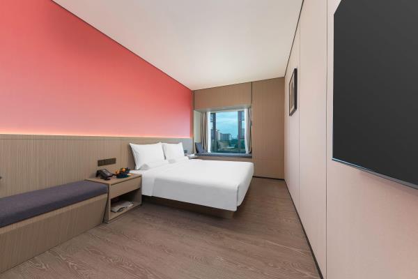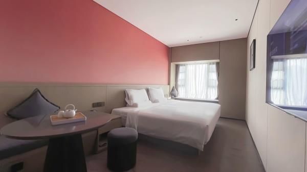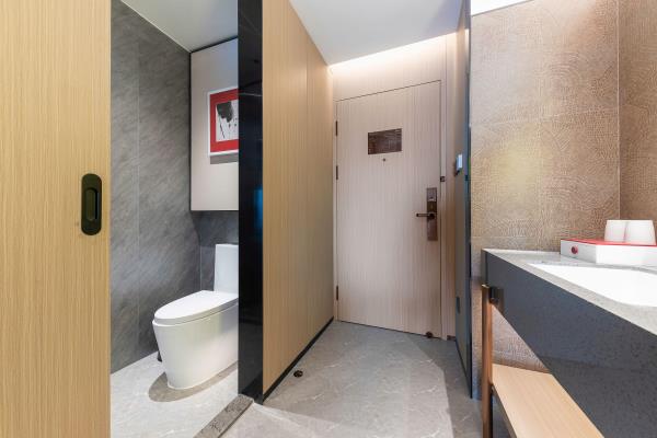 酒店位于顺德区大良105国道旁美的悦然广场大型商场地标综合体3座,距地铁3号线欢乐海岸站车程8分钟,广州南站车程 35分钟左右;毗邻顺德大良新城区政府及金凤凰广场;楼下大型商场悦然广场、周边大信广场等商业配套;顺德欢乐海岸 PLUS、顺峰山公园和容桂渔人码头等景点均在酒店附近。并配有大型停车场、丰富的中式自助早餐、自助洗衣烘干房和健身房,同时还配备了智能机器人以及高速无线网络,地理位置优,交通便利,是商务出差、亲子出游、观光购物宾客的理想居所。酒店由石湾陶瓷大师曾鹏亲自提名,产品设计打破“千篇一律”,是以“陶铁艺岭南水乡文化”为主题的中高端精品连锁商旅酒店。客房配备55-65英寸电视支持手机投屏,零压睡眠枕。卫生间干湿分离,臻选顺德品牌洗沐用品、这些好物使生活如此美好,以喜悦心享生活。踏入喜悦门,拥抱喜悦!
