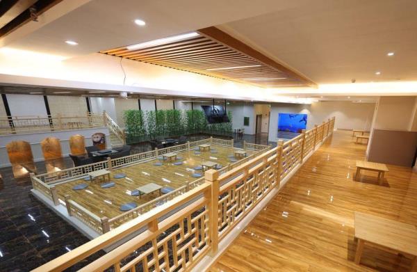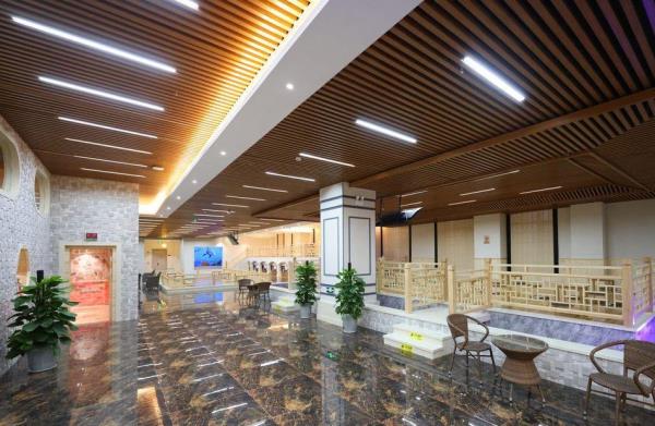 主楼高10层。酒店内配套服务:洗浴(和盛汤泉)、餐饮(盛和轩酒楼),吃、住、玩一条龙,欢乐尽享!7000 平自有停车场,泊车无忧!环境优美、服务热情、位置优越。