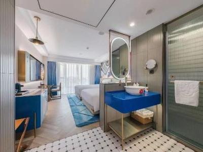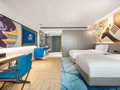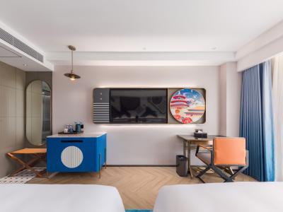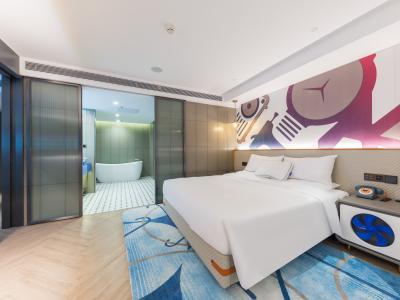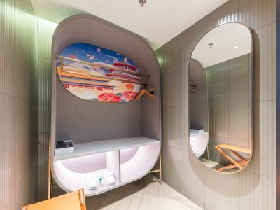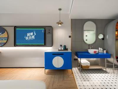 原为初,是原本的样子; 拓为展,开拓开辟未来的潮流。原拓:初心始原、拓创未来!原拓始于初心,始于对国的热爱,始于对家的依恋,始于对美好的憧憬;原拓敬于未来,敬于经典中国文化的创新,敬于城市人文风尚的焕新,敬于中国年轻一代勇于表达的自信。青春焕新,国潮创酷 —— 原拓旨在打造本土市场极具中国文化特色的多元化“国潮”体验酒店,以多维手法创新演绎中国传统文化,焕新城市在地人文及风尚元素,为崇尚“中国创造、中国潮流”的千禧一代及拥有年轻趣玩心态的旅行者打造一个多彩、新潮且乐趣十足的共享生活空间,满足他们探索本地文化、自我表达、共创社群的个性化旅宿新需求。 酒店位于西南三环万柳桥南边,酒店环境清雅,停车方便,交通便利,距离10号线纪家庙地铁站步行3分钟,距离大兴机场线地铁一站地,距离北京西站20分钟车程,距离北京南站12分钟车程。酒店设施齐全:会议室、健身房、洗衣房、全日制餐厅、汽水博物馆,非遗体验馆,您在酒店即可享受北京当地美食,非遗展览馆及不同年代的汽水饮品、惬意下午茶、特调鸡尾酒等。