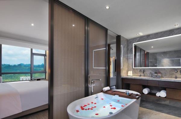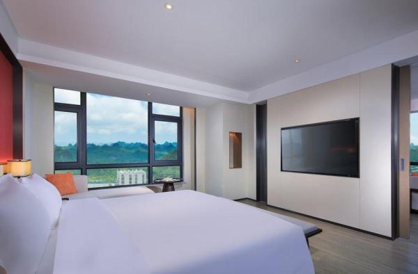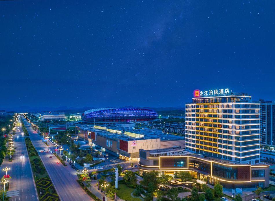 酒店坐落于崇左市城南新区,毗邻融创ins park、体育中心旁,正面纵览喀斯特地貌风光;距离高速路入口5分钟车程,距离崇左南站、太平古城15分钟车程;酒店集住宿、餐饮、会议、康体、休闲等配套设施为一体,入住泊隐,体验骆越文化与东方美学的完美融合,感受水山间的惬意,泊隐酒店欢迎您!